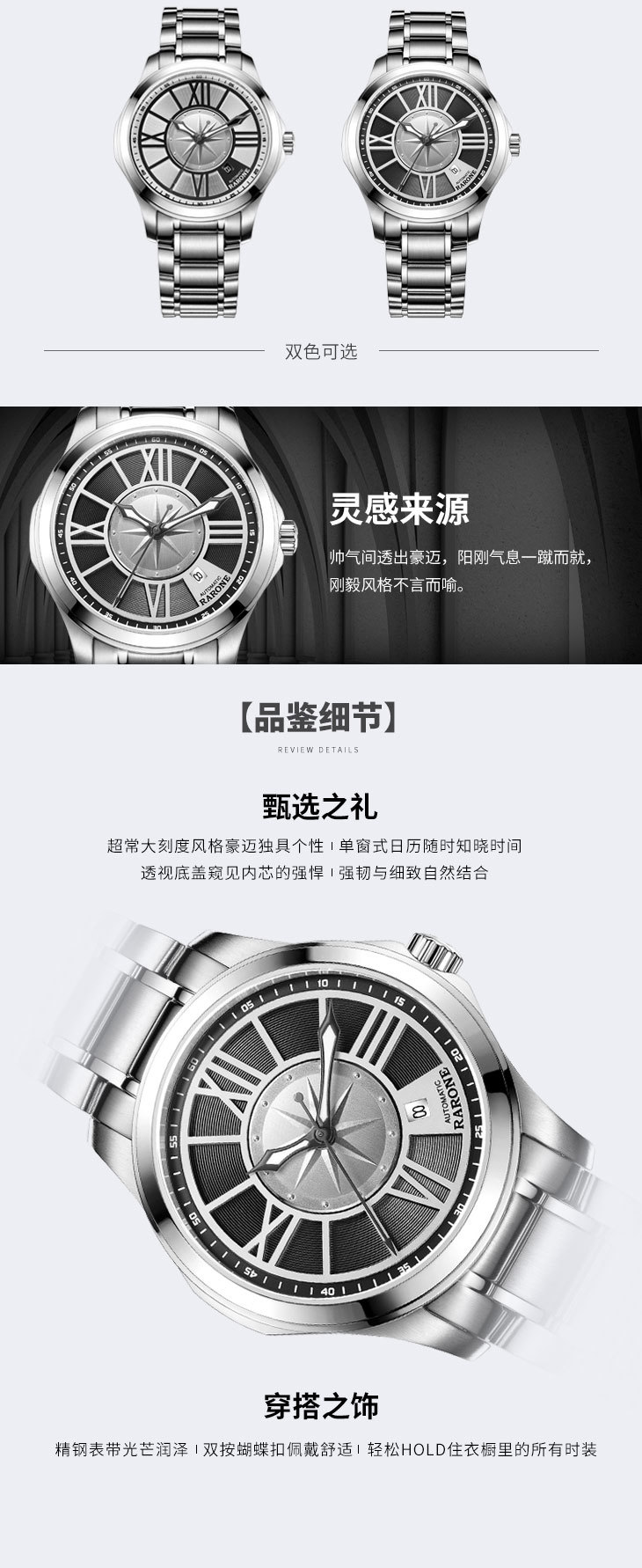 RARONE雷诺表始终秉持创新设计与精品战略。旨在帮助人们精确感悟时间,以一种无畏、坚韧的精英态度,激励每个人在探索世界的过程中,御时而行。