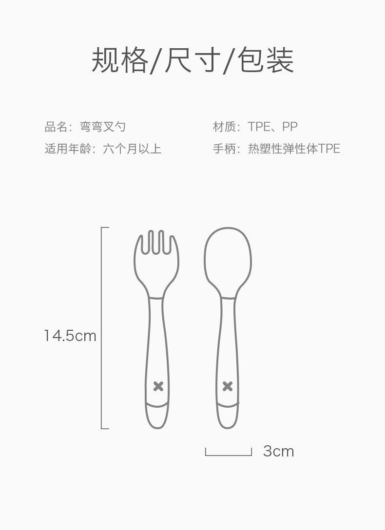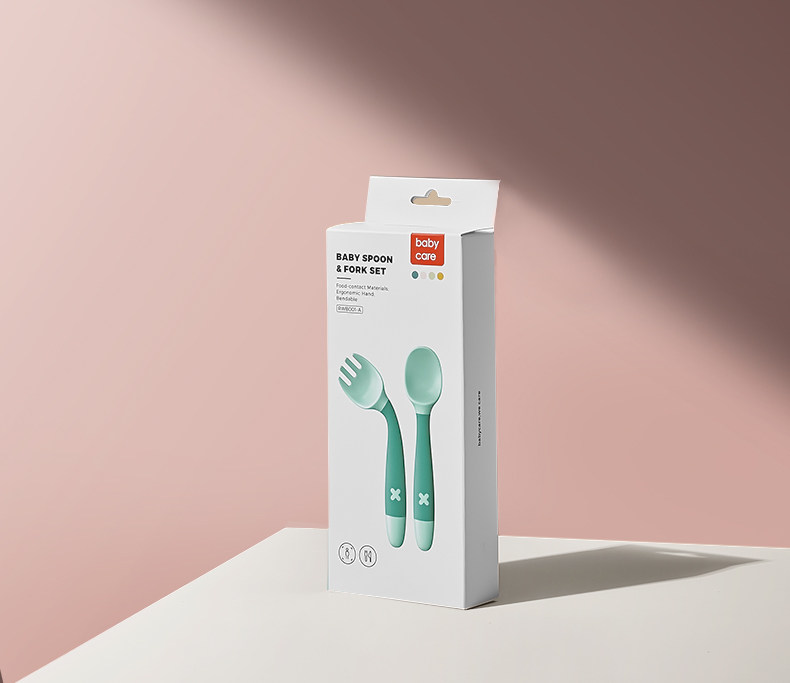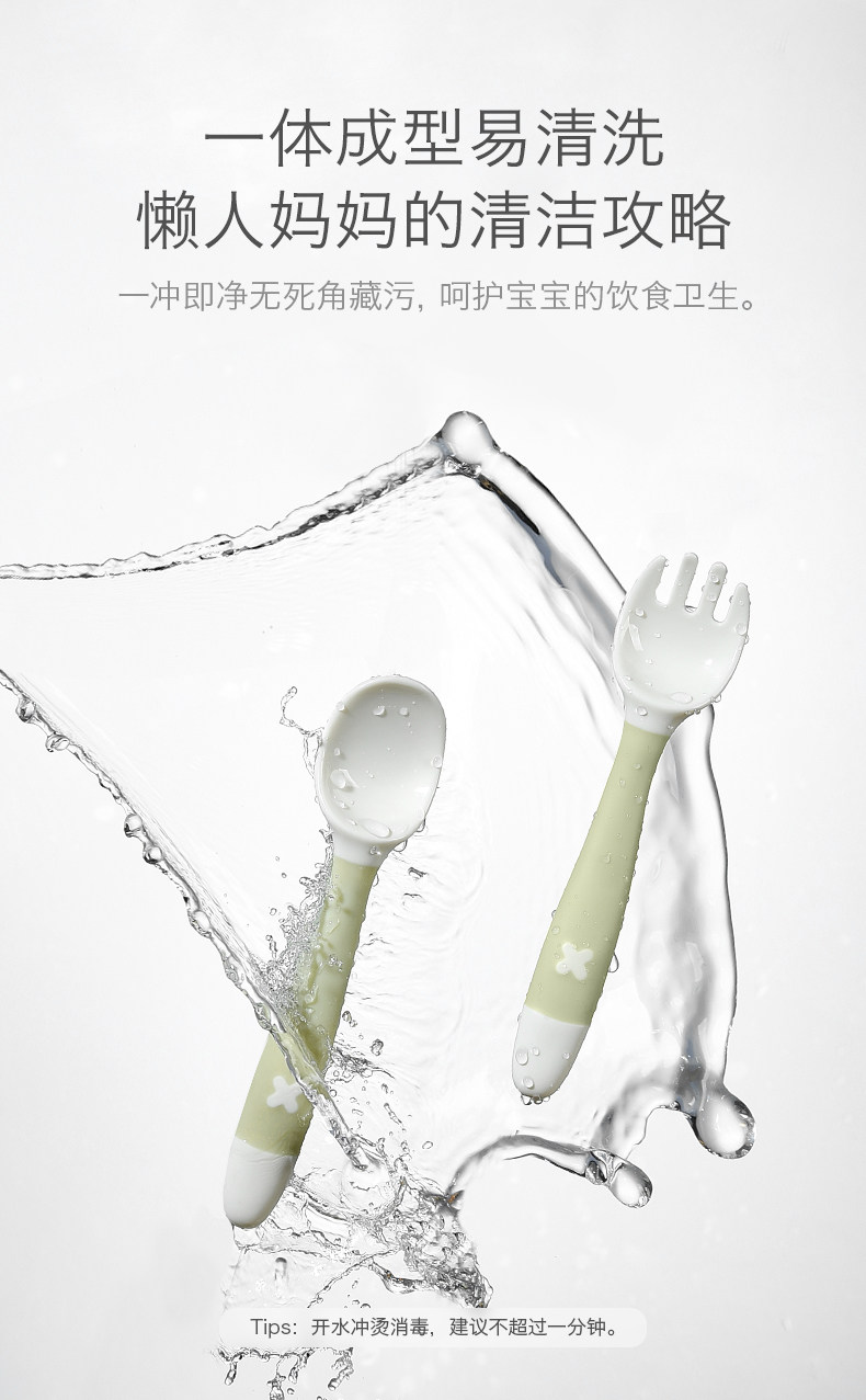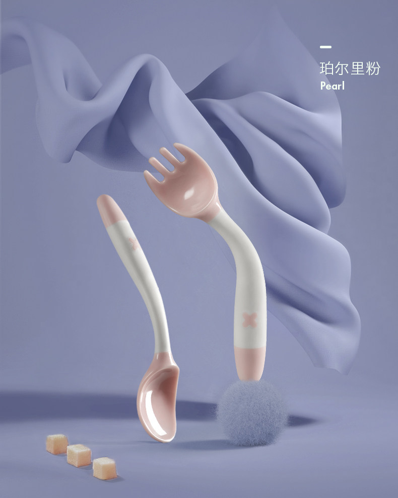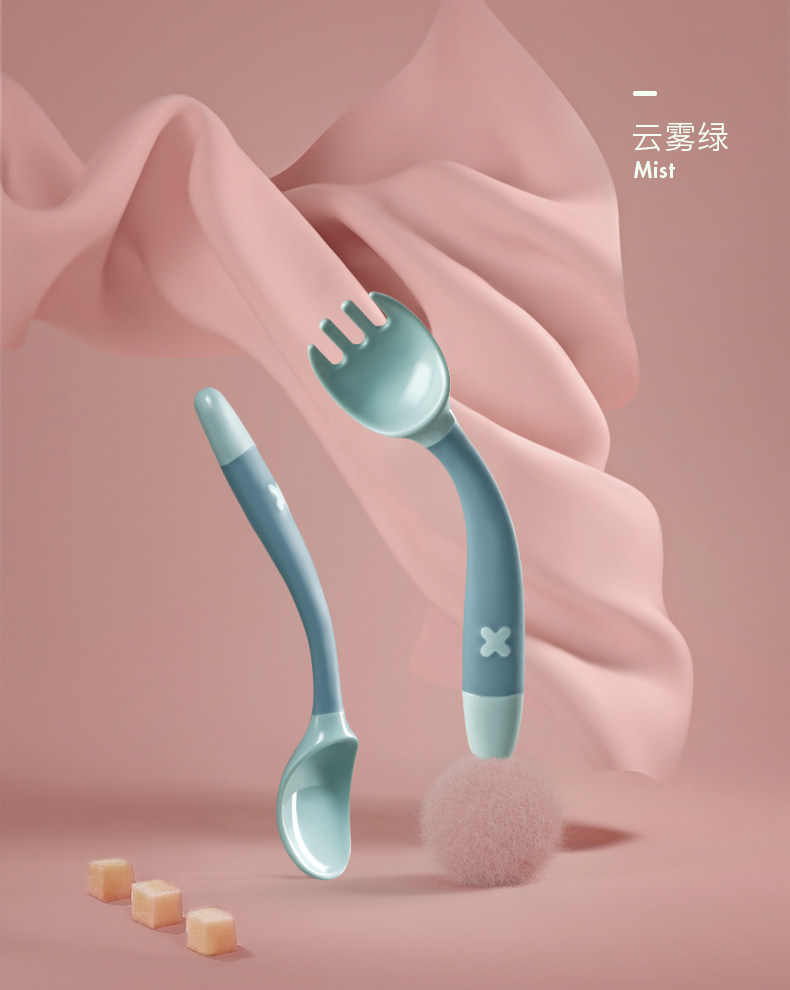 babycare宝宝学吃饭训练勺子弯头叉勺套装婴儿辅食勺弯曲儿童餐具