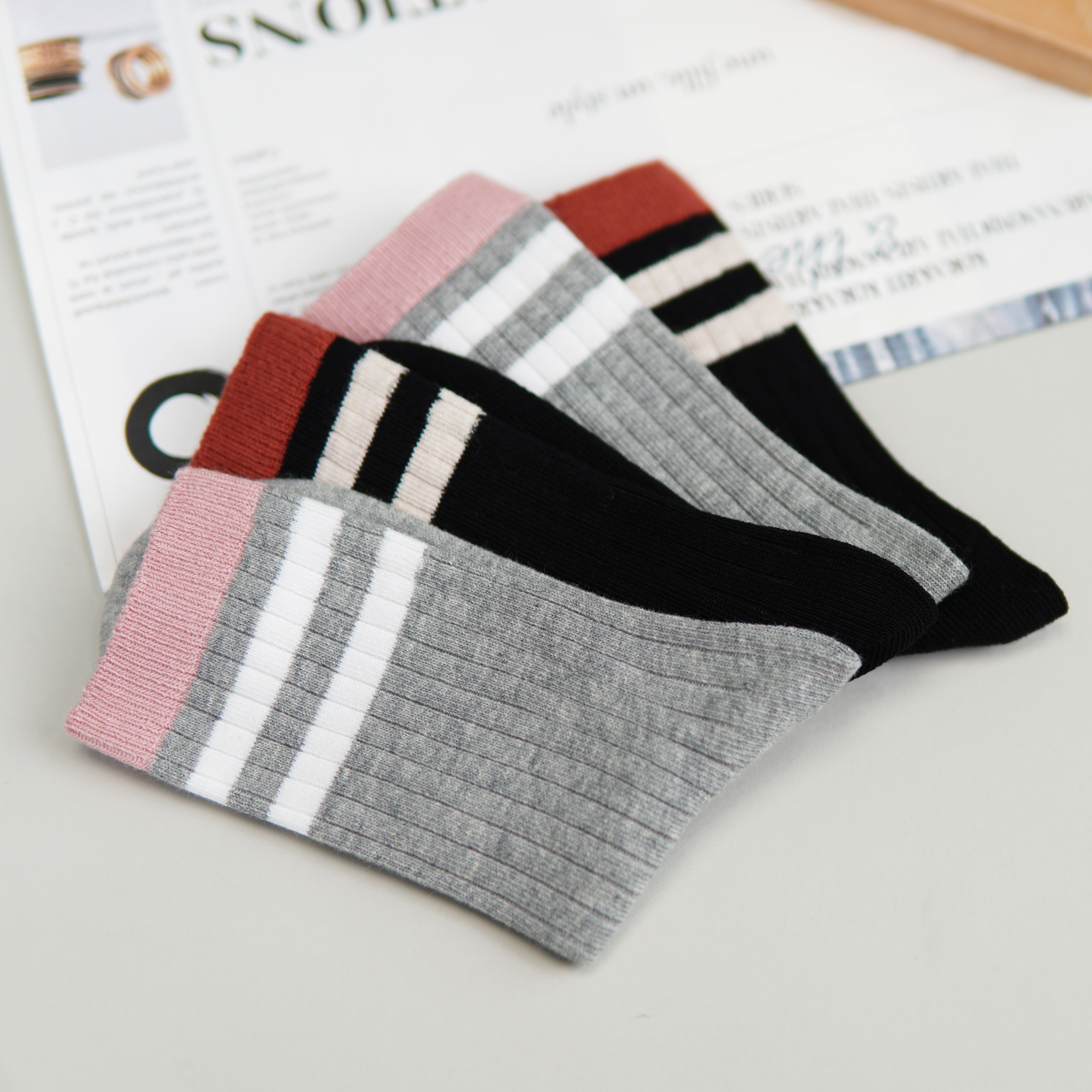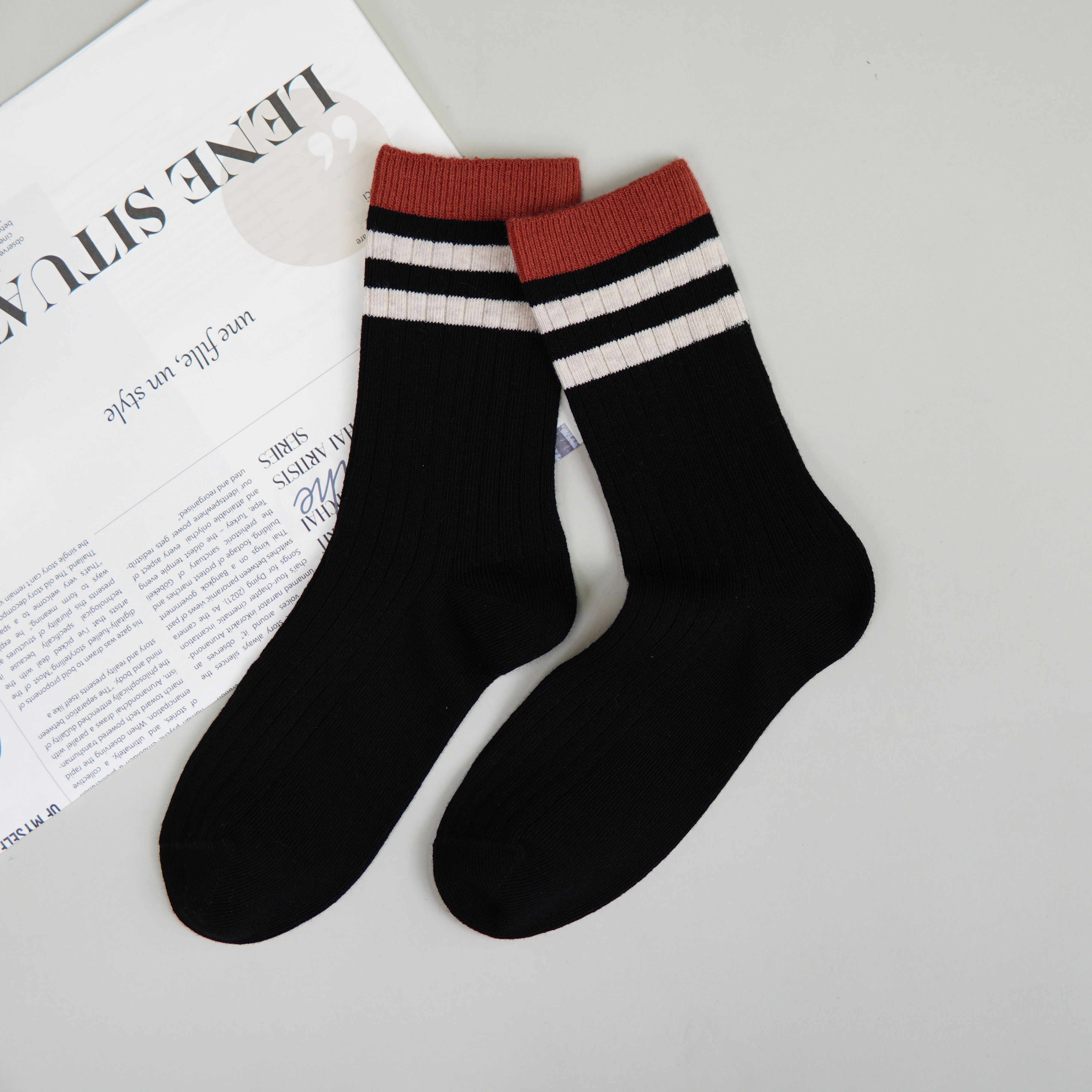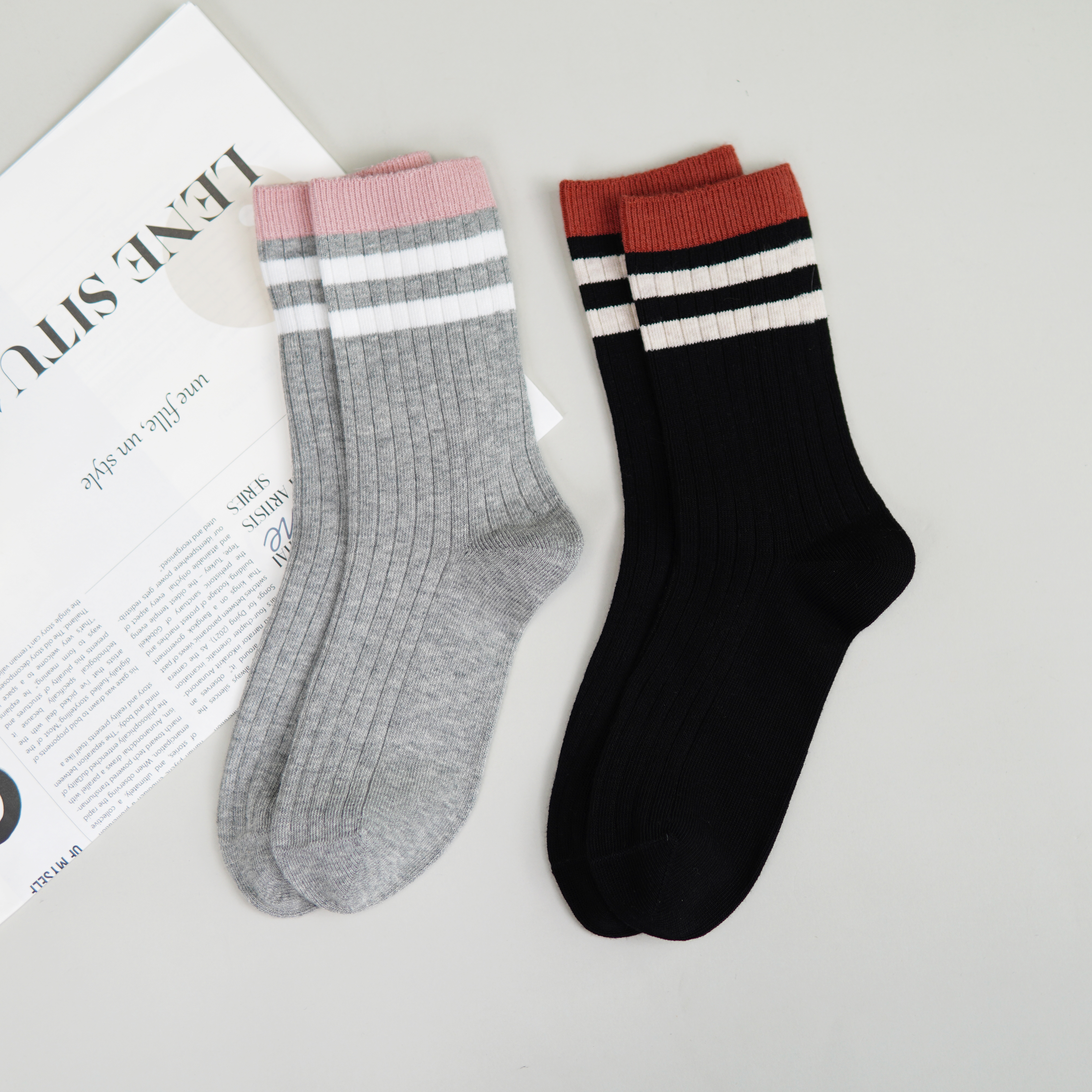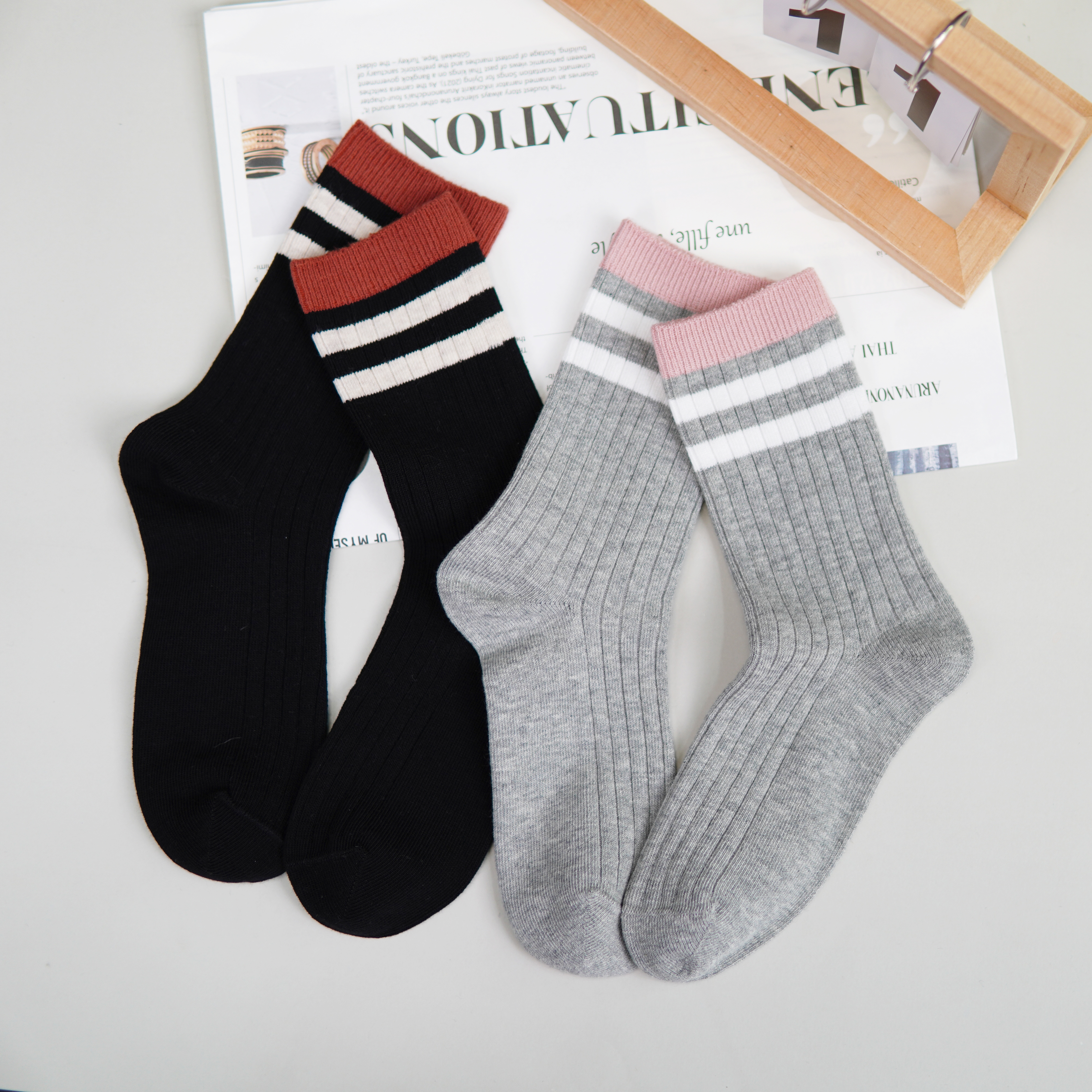 【2双装】女士双针中长筒袜子时尚棉袜四季女袜子【6双6折】【2422217】