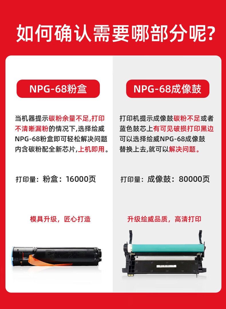绘威NPG-68粉盒 适用佳能Canon IR-1435 IR-1435iF打印机复合机墨盒 碳粉 墨粉 墨粉盒