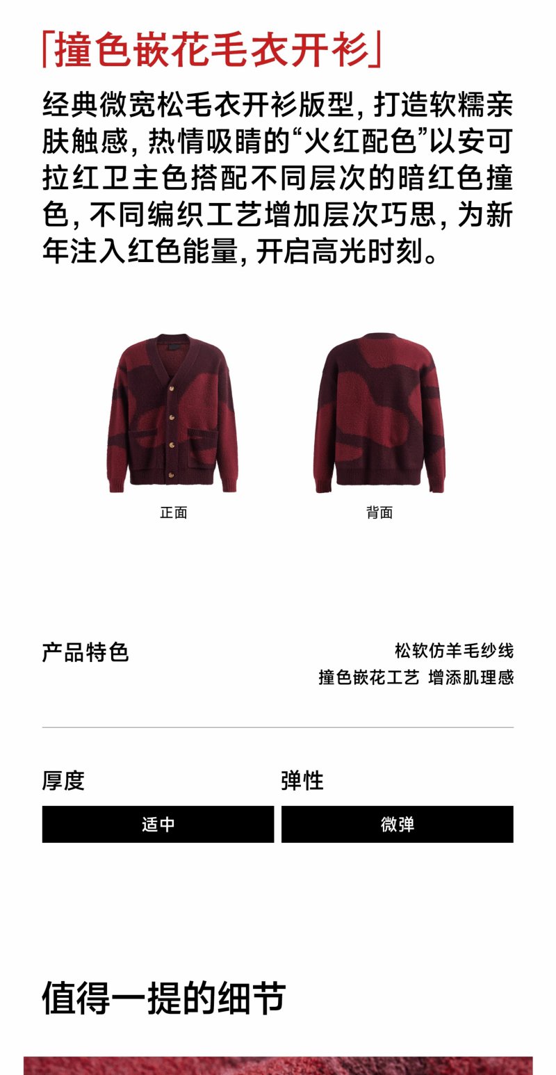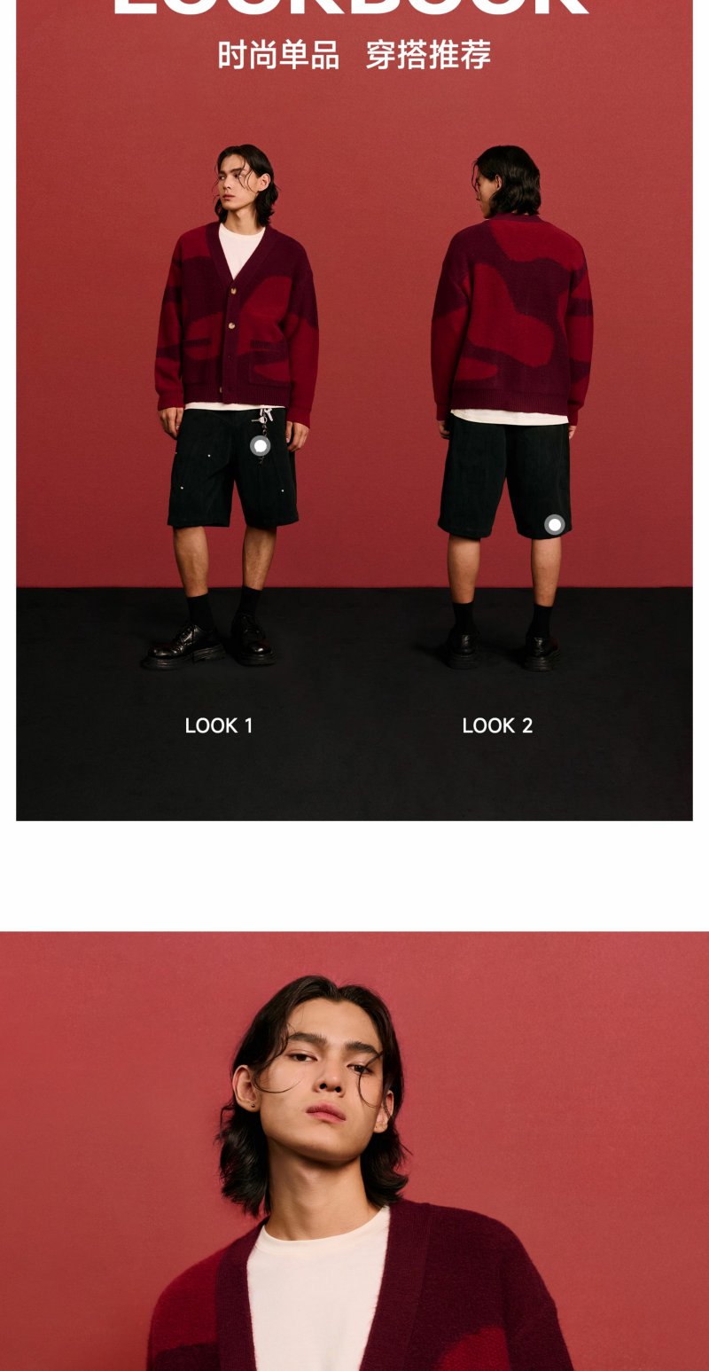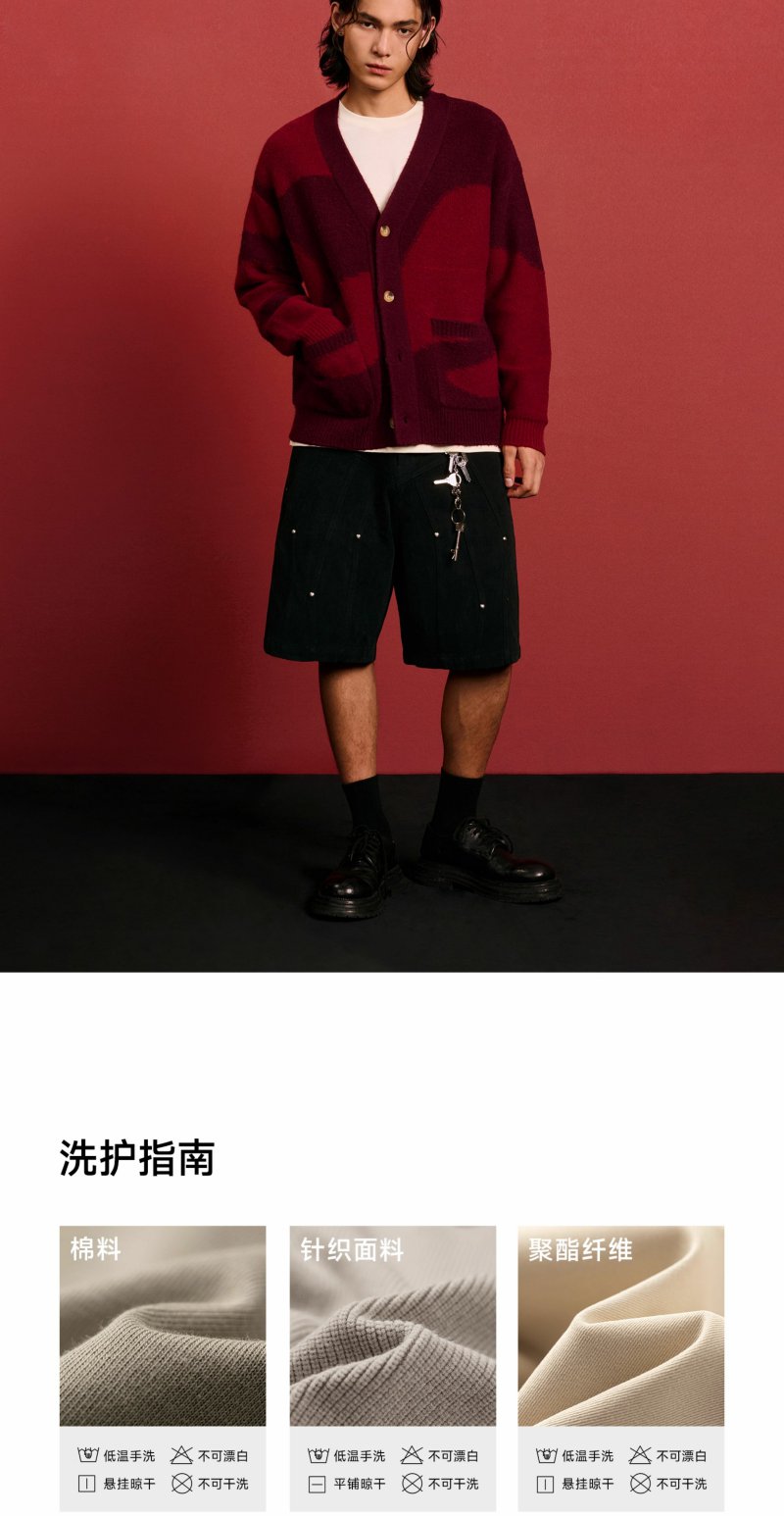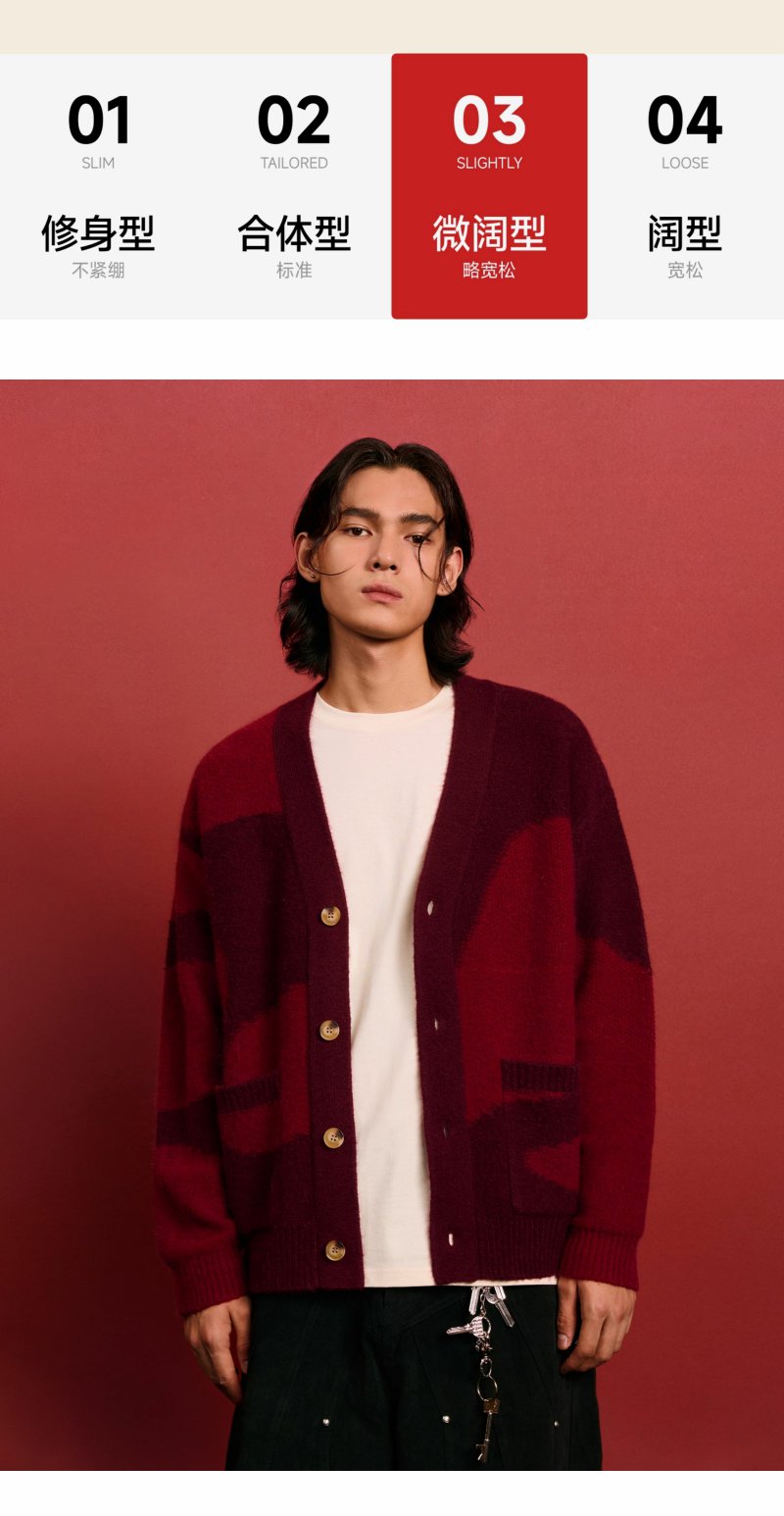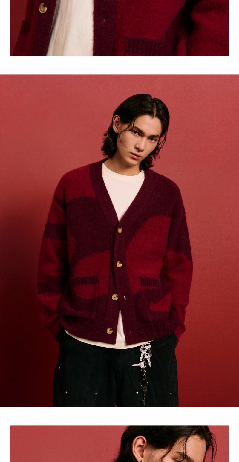 CHINISM赤尘 CH红色V领开衫毛衣男冬季慵懒休闲针织衫男士外套