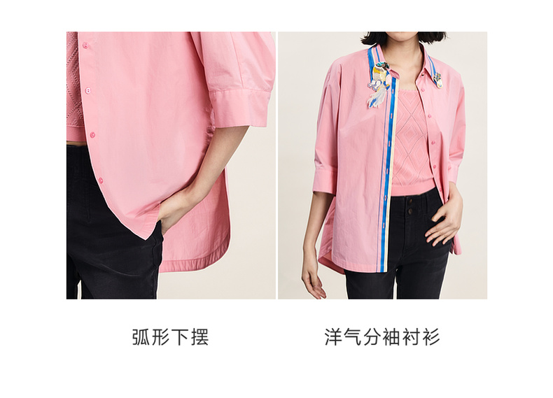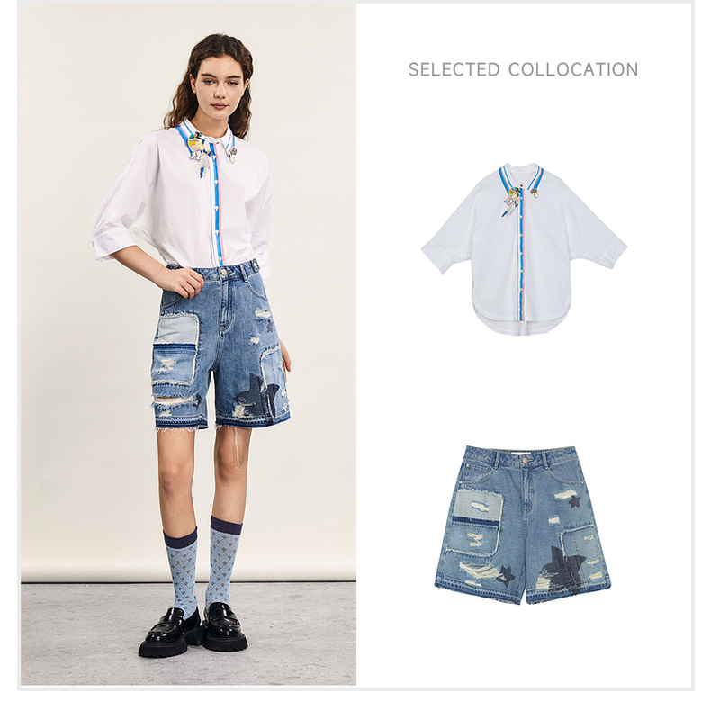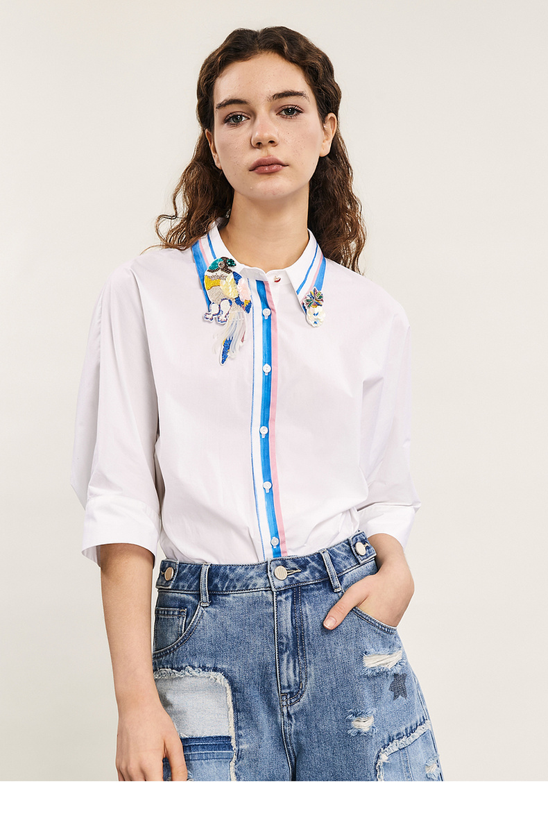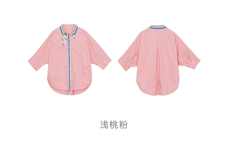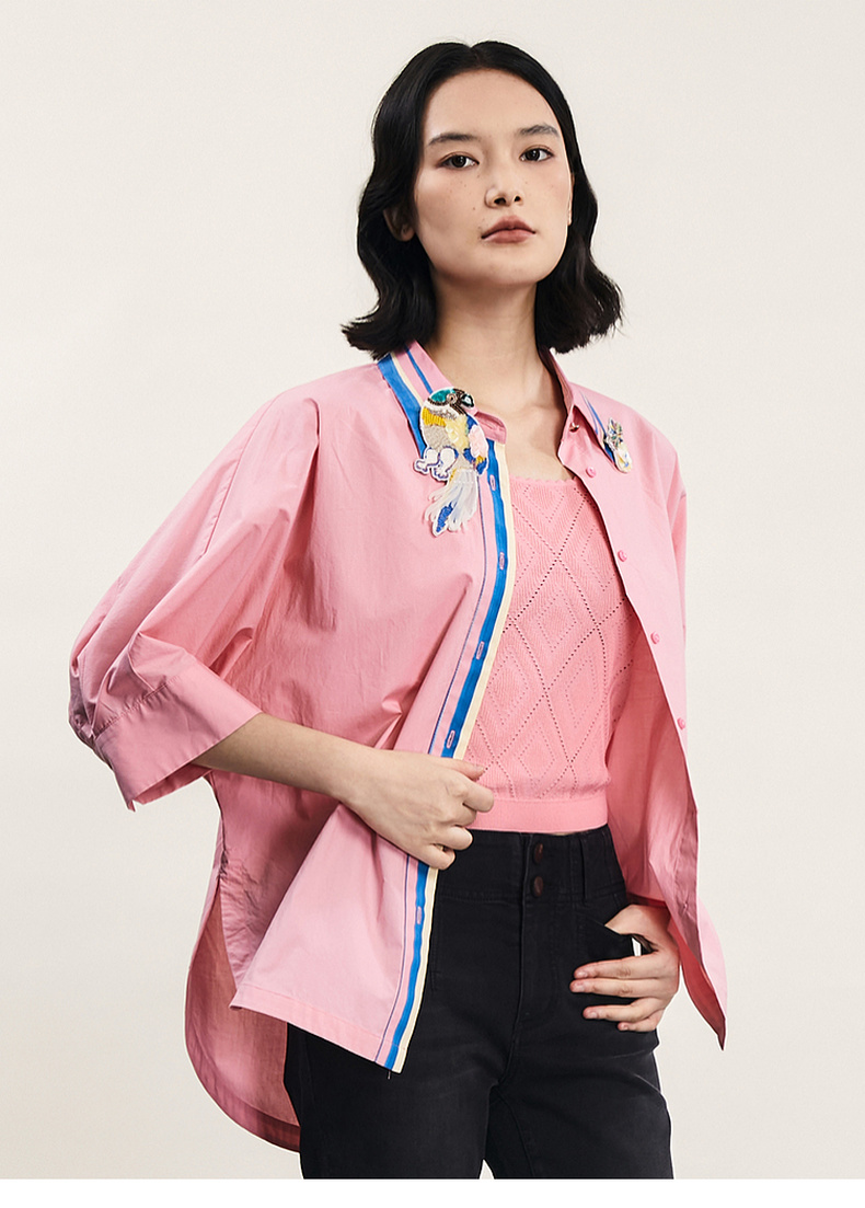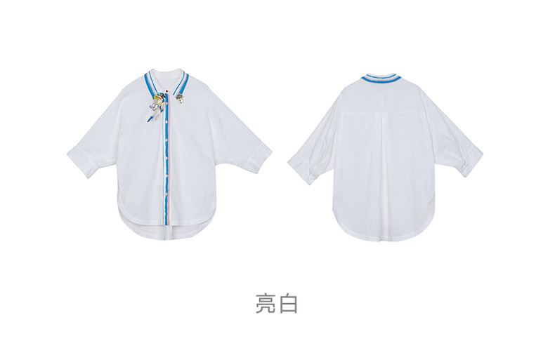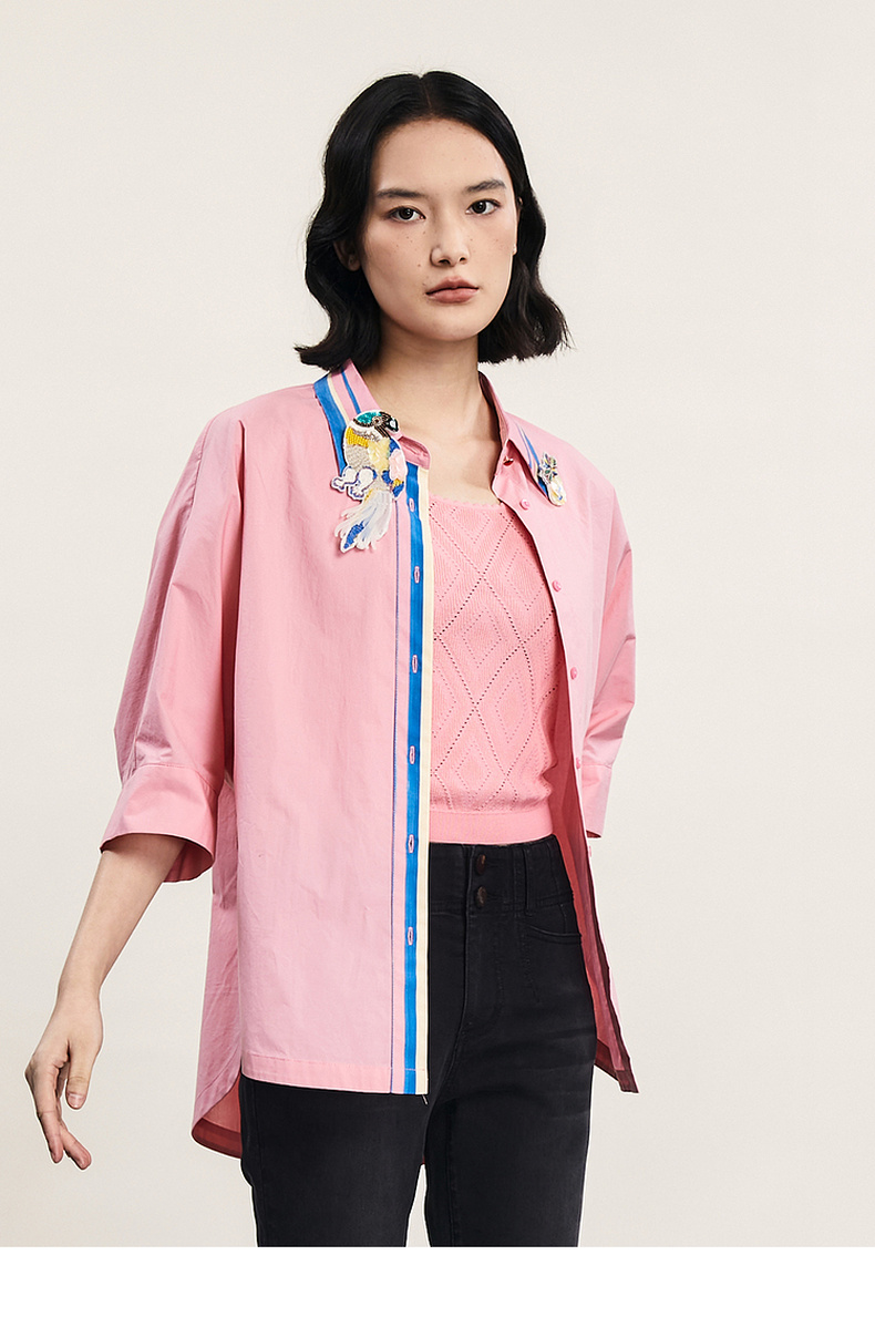谜底大廓形衬衫分袖女2024年夏新品复古风章仔绣花衬衣242MC0545