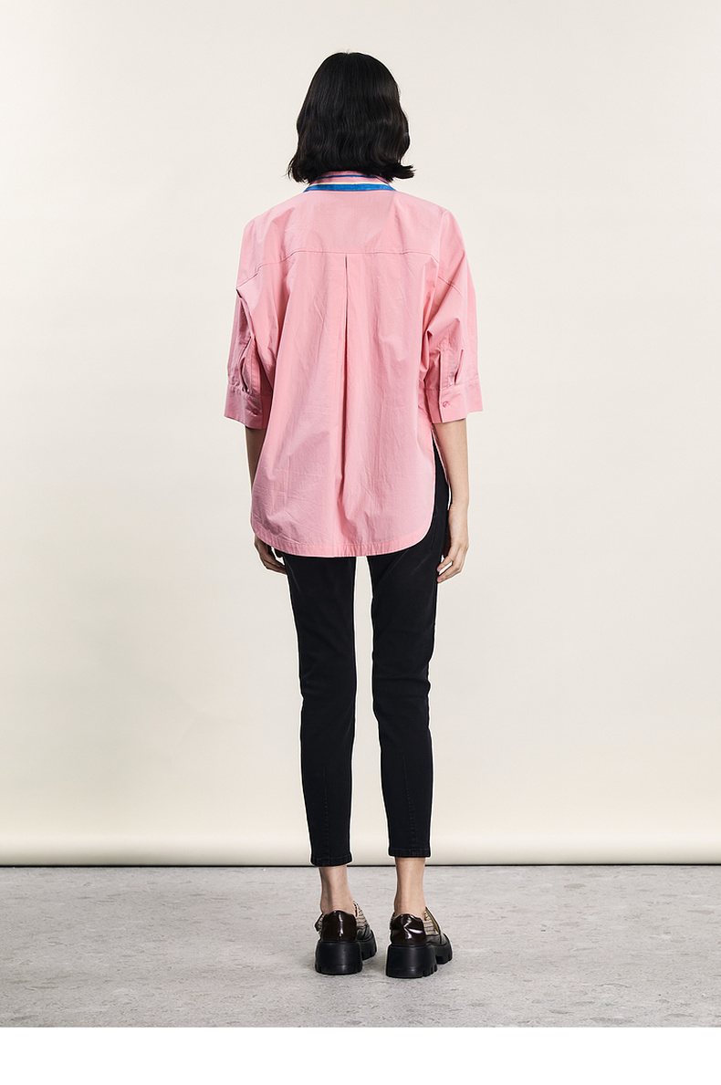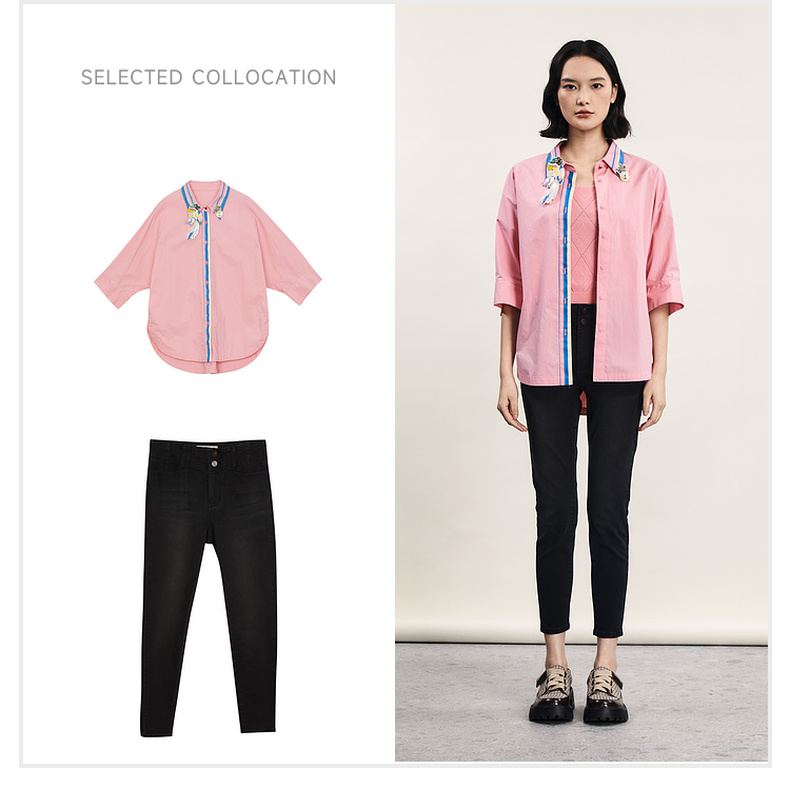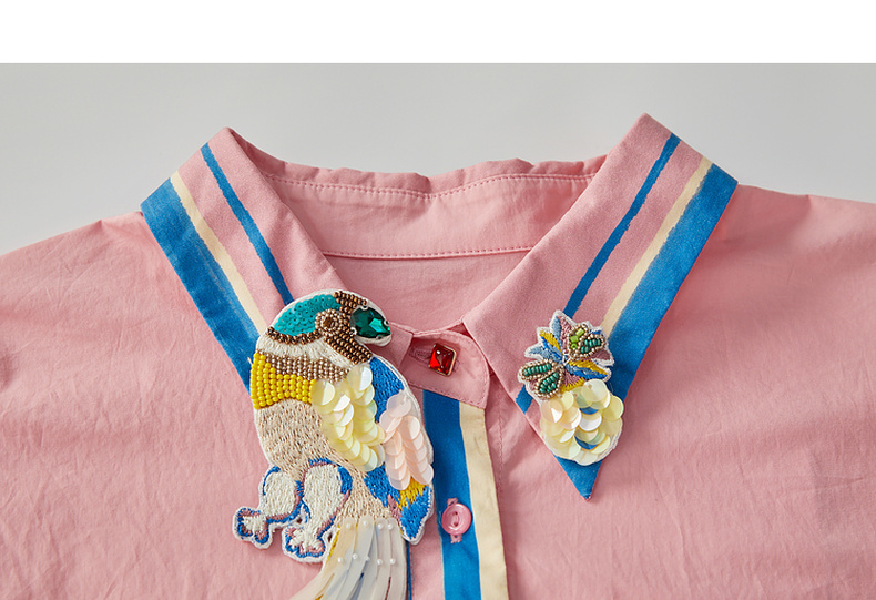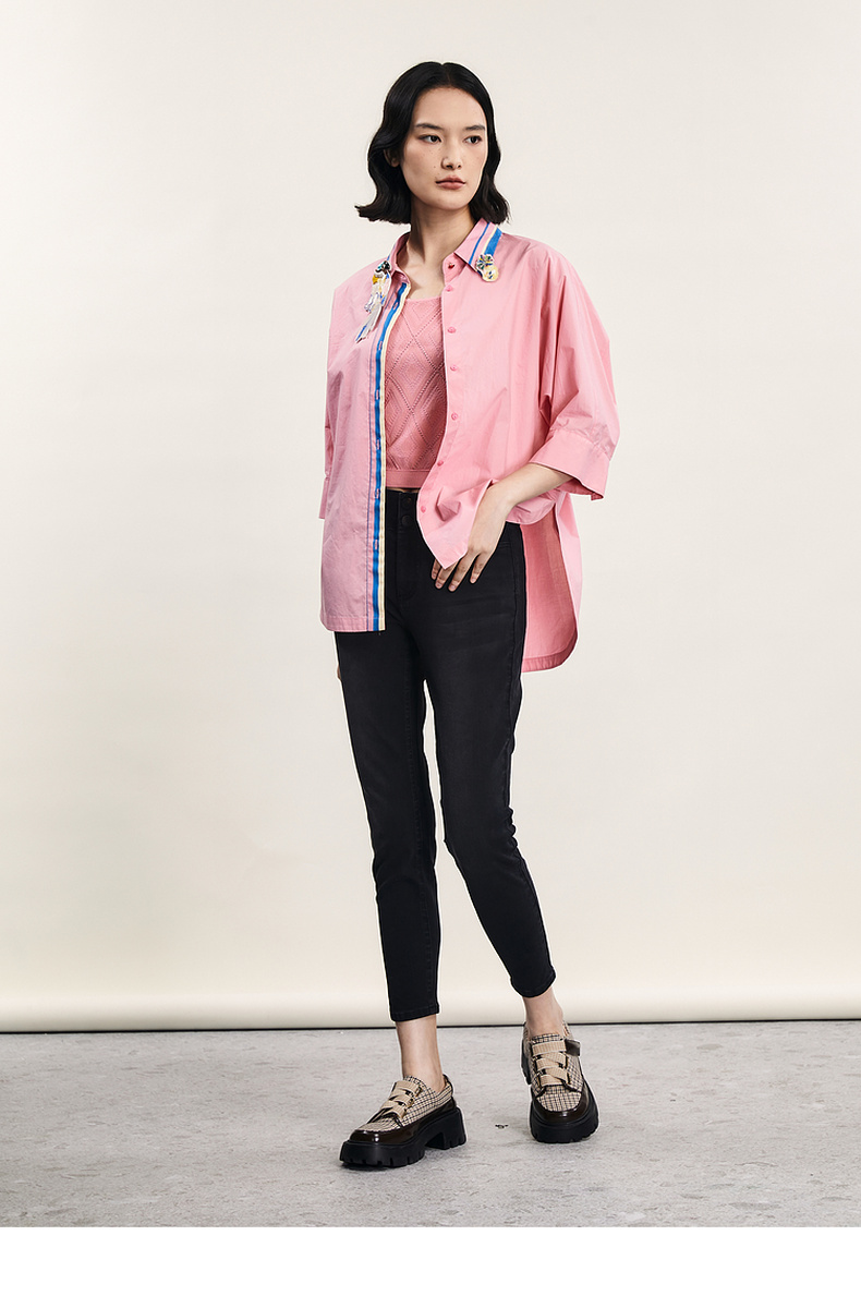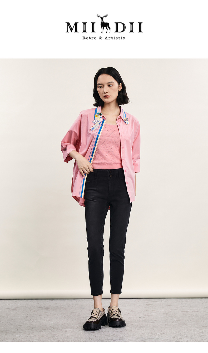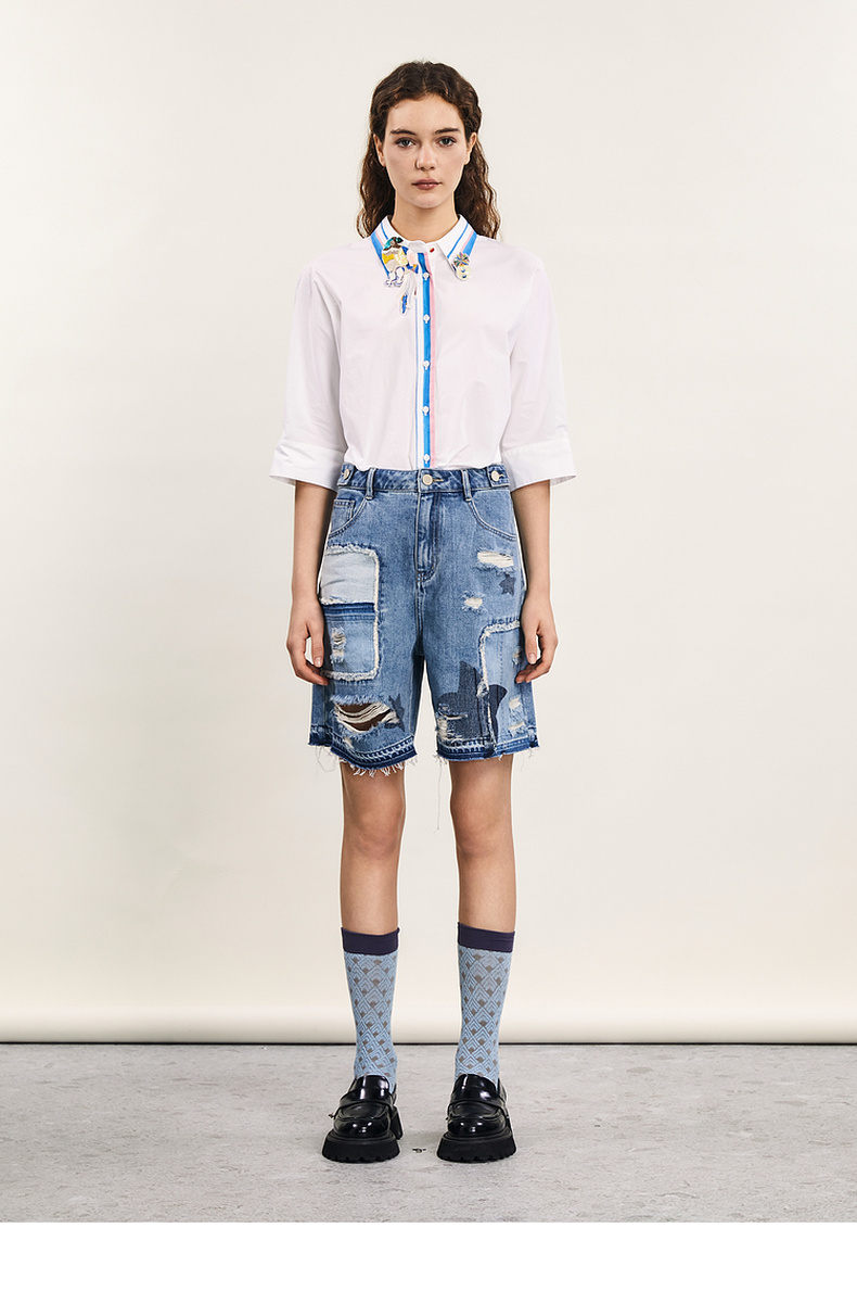 谜底大廓形衬衫分袖女2024年夏新品复古风章仔绣花衬衣242MC0545