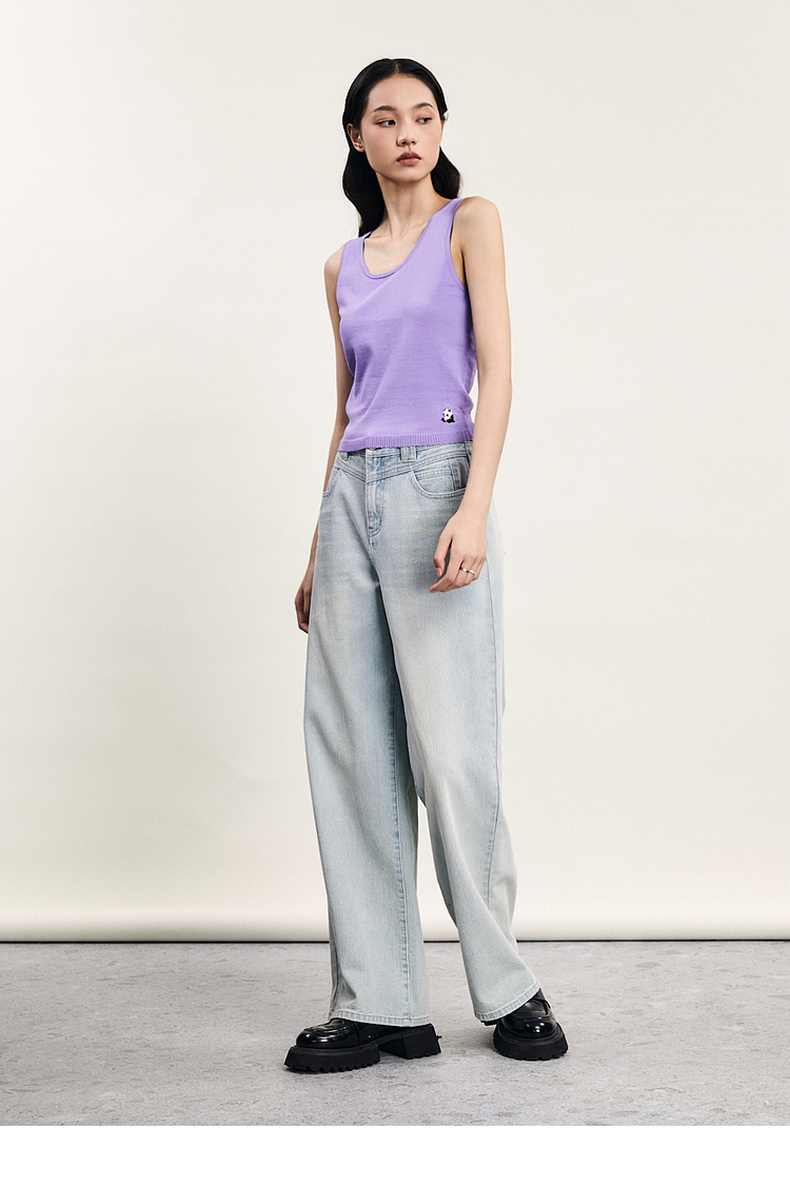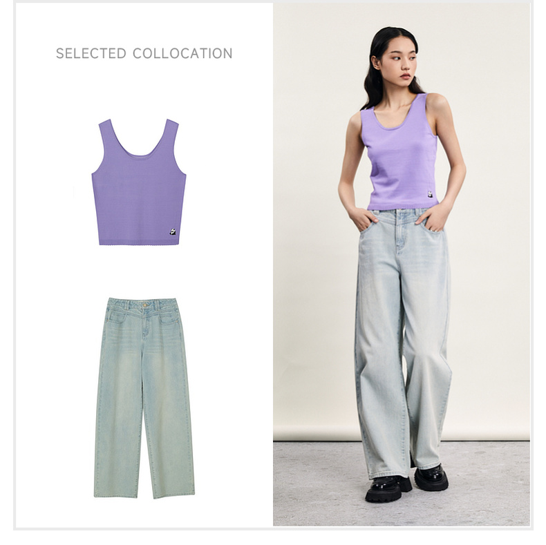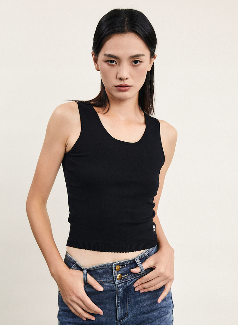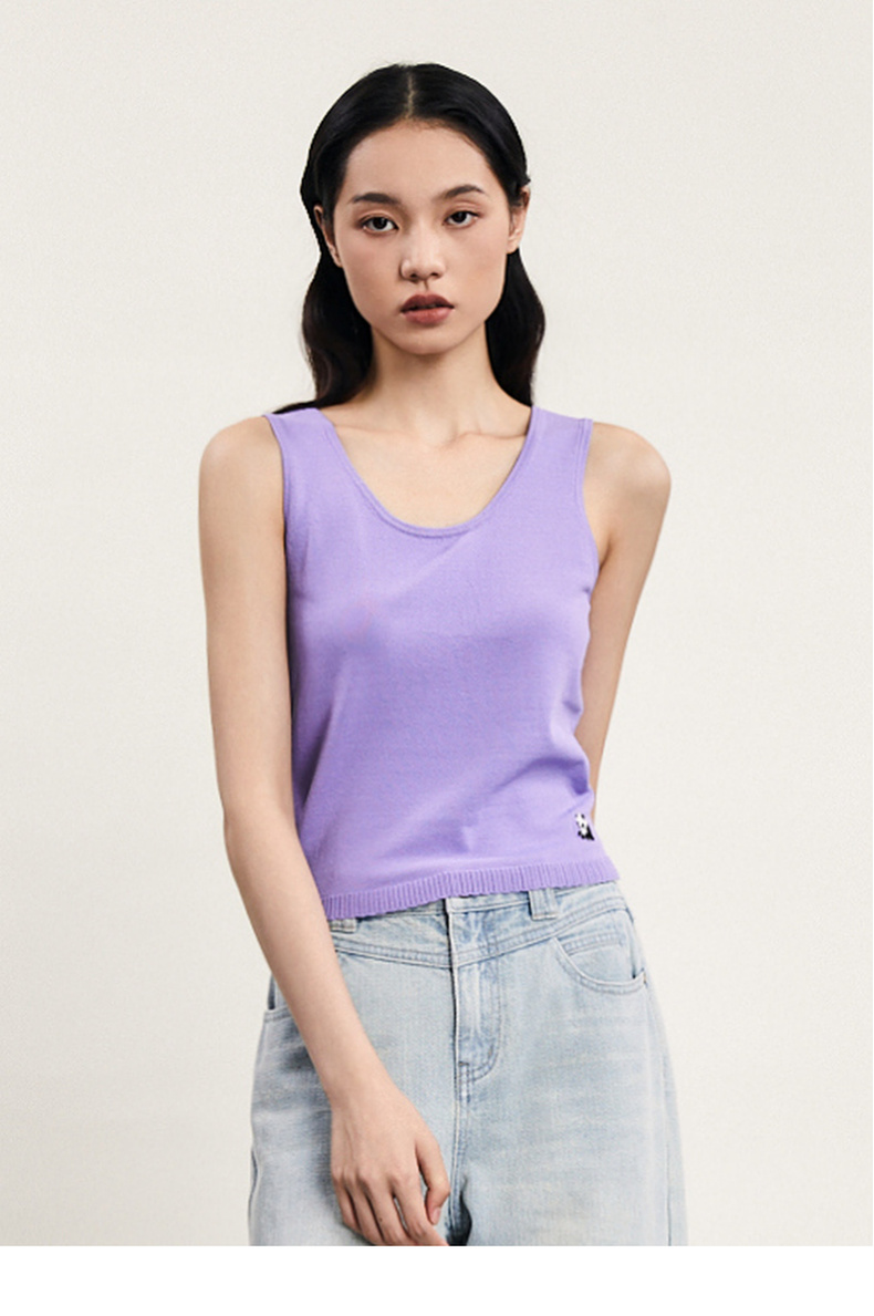 谜底针织背心女2024春款极简风低圆领修身短款打底上衣241MZ0359