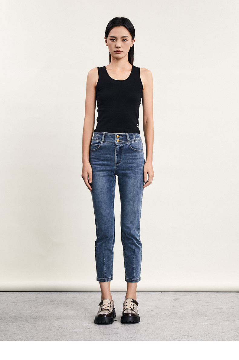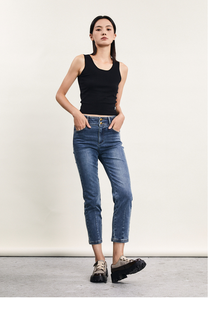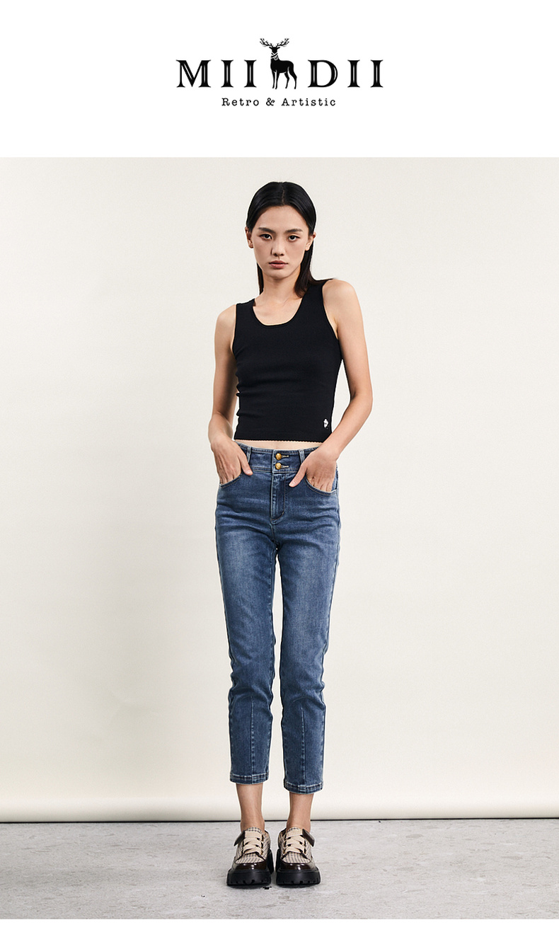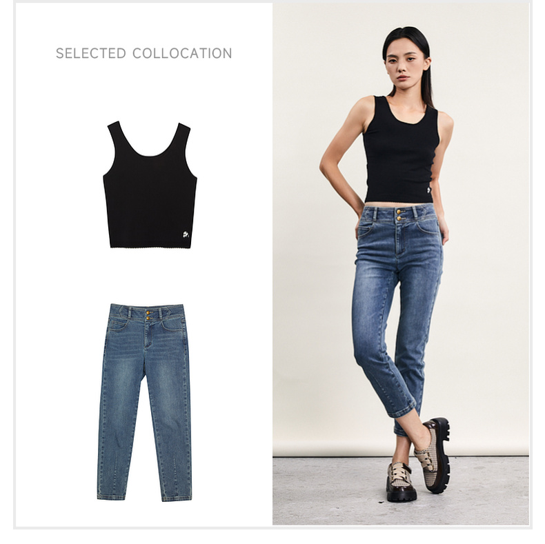 谜底针织背心女2024春款极简风低圆领修身短款打底上衣241MZ0359