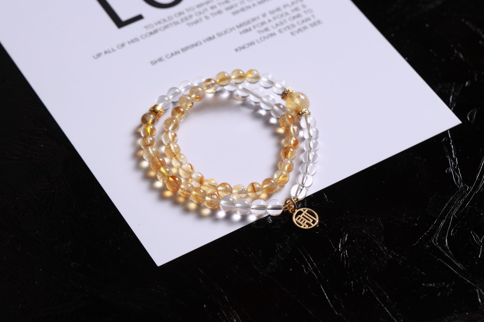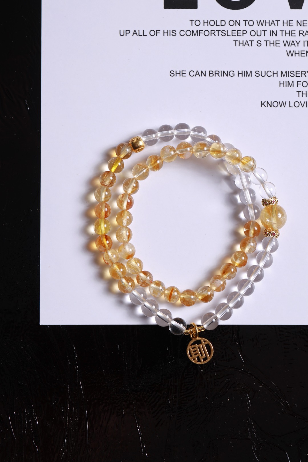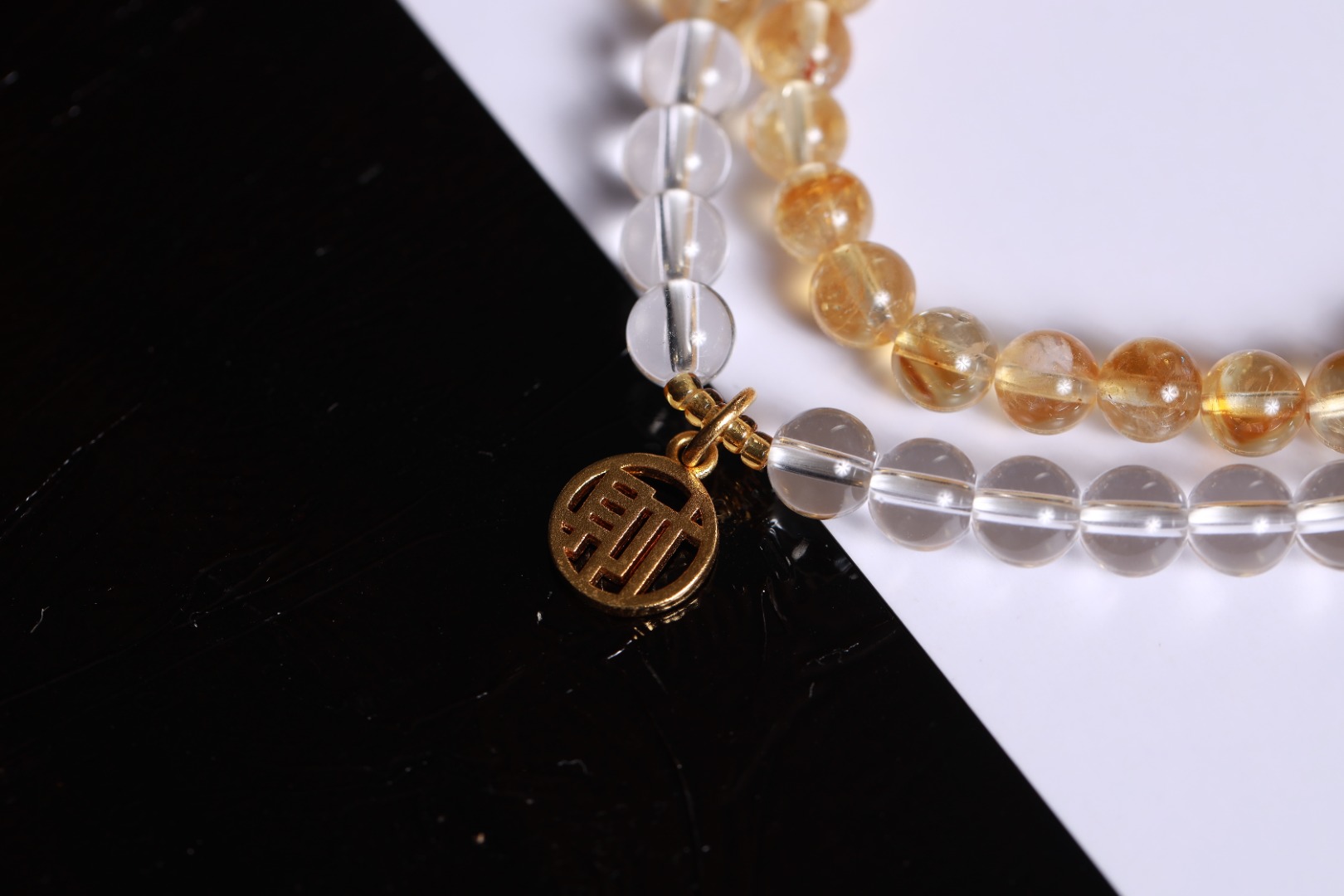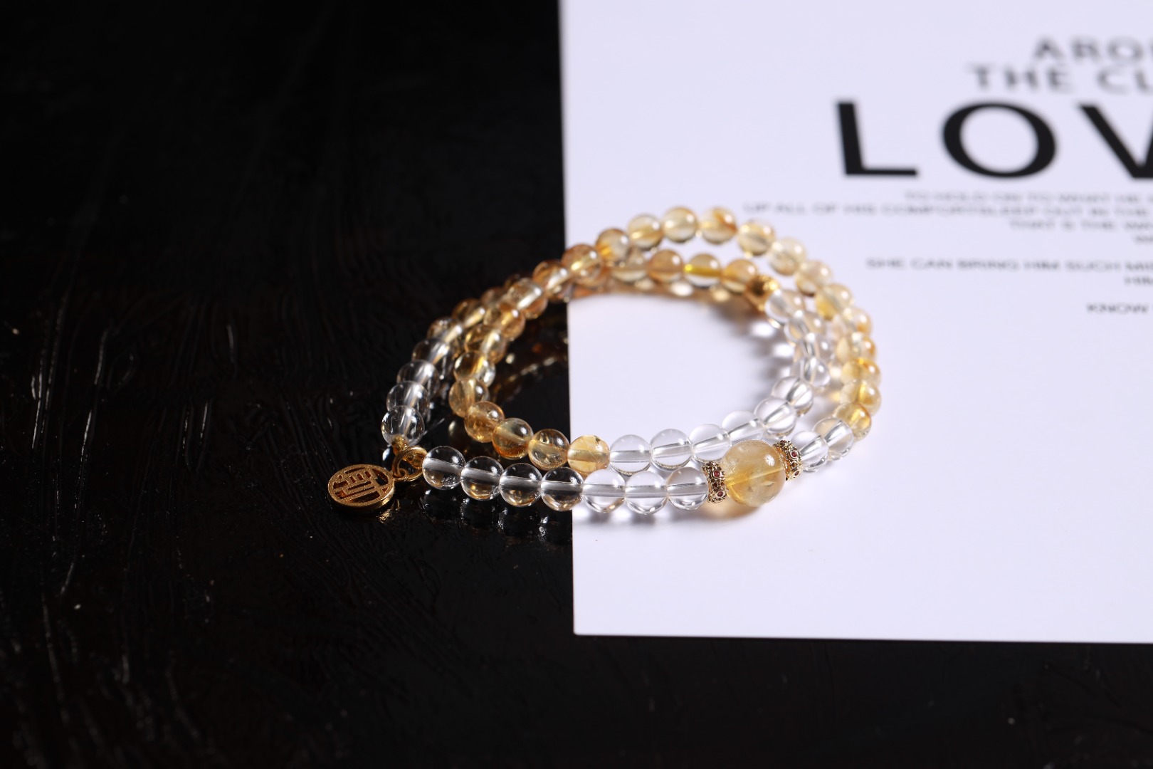 | 配件 | 白水晶,树脂珠金色,沙金红点花环,沙金镂空财字,沙金扎基小隔片 |