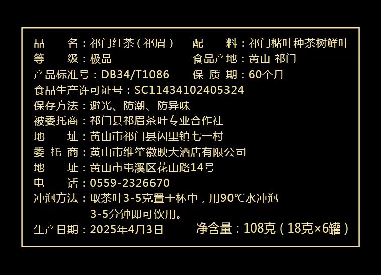 祁门红茶/极品祁眉//108g(18g*6罐)/礼盒/红茶