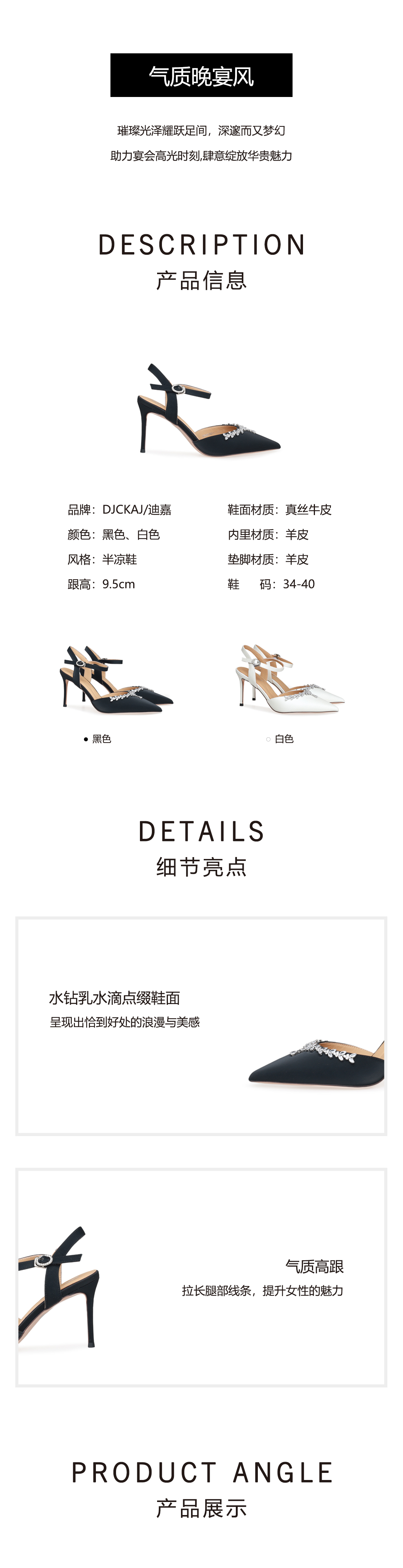 豪麟名鞋奥莱迪嘉女鞋半凉鞋真丝牛皮DJYYA51WB013黑色 原价1960元