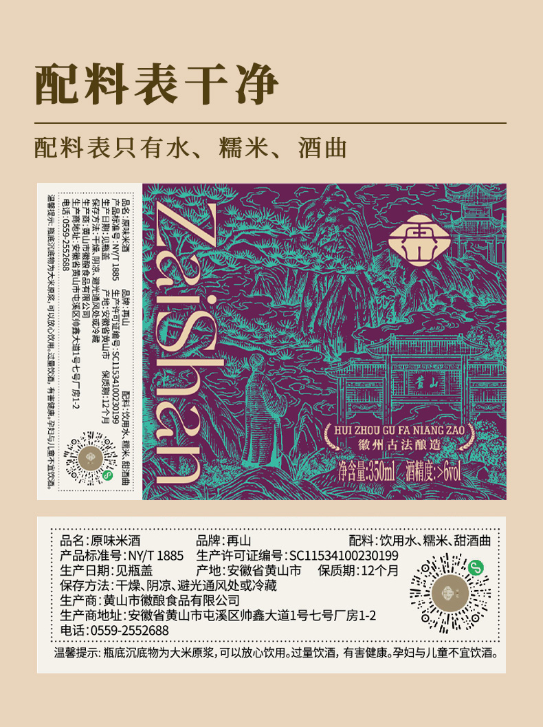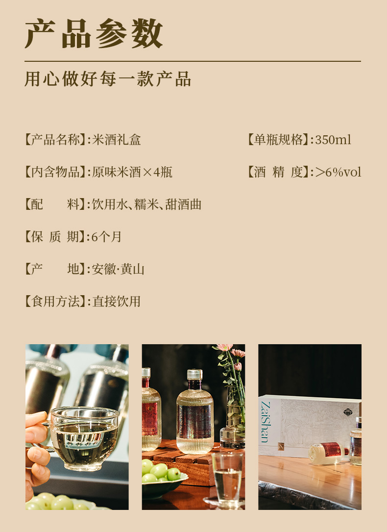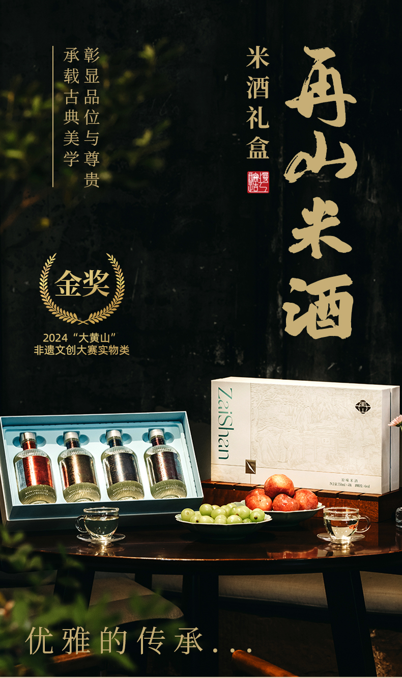 再山米酒/正宗糯米酒/甜酒/350ml*4瓶礼盒装/手工酿造/无添加