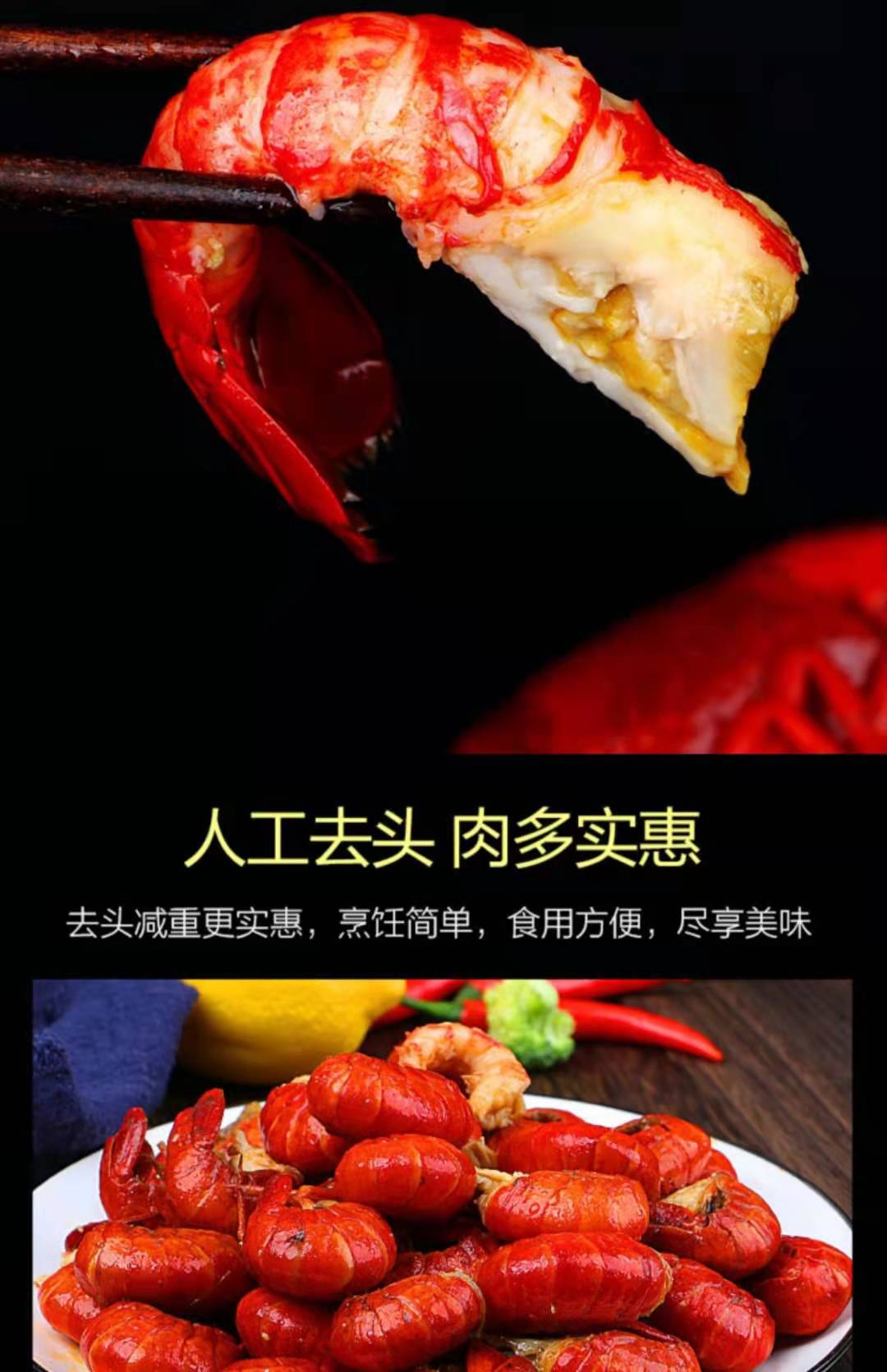 【顺丰包邮】小龙虾龙虾尾------新鲜无冰衣一级龙虾尾250克*4包