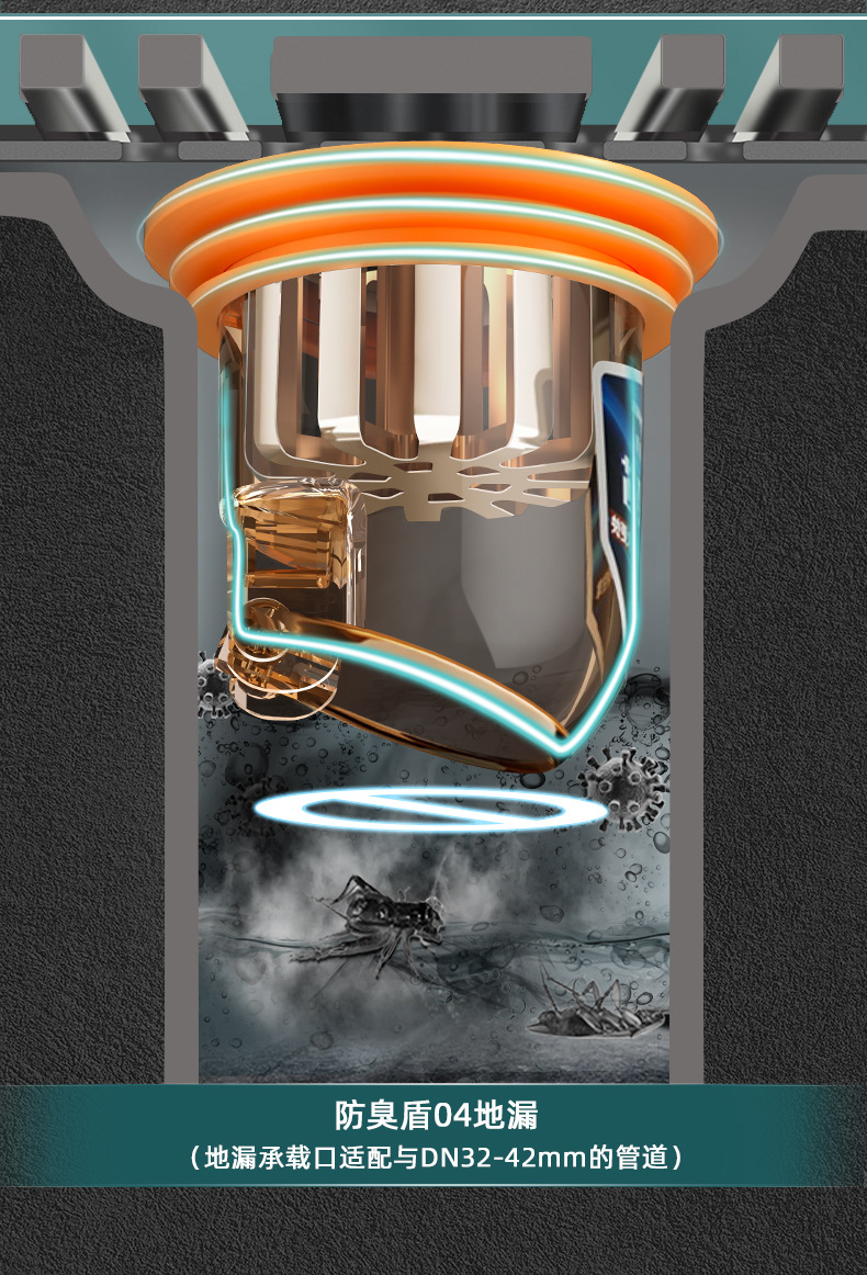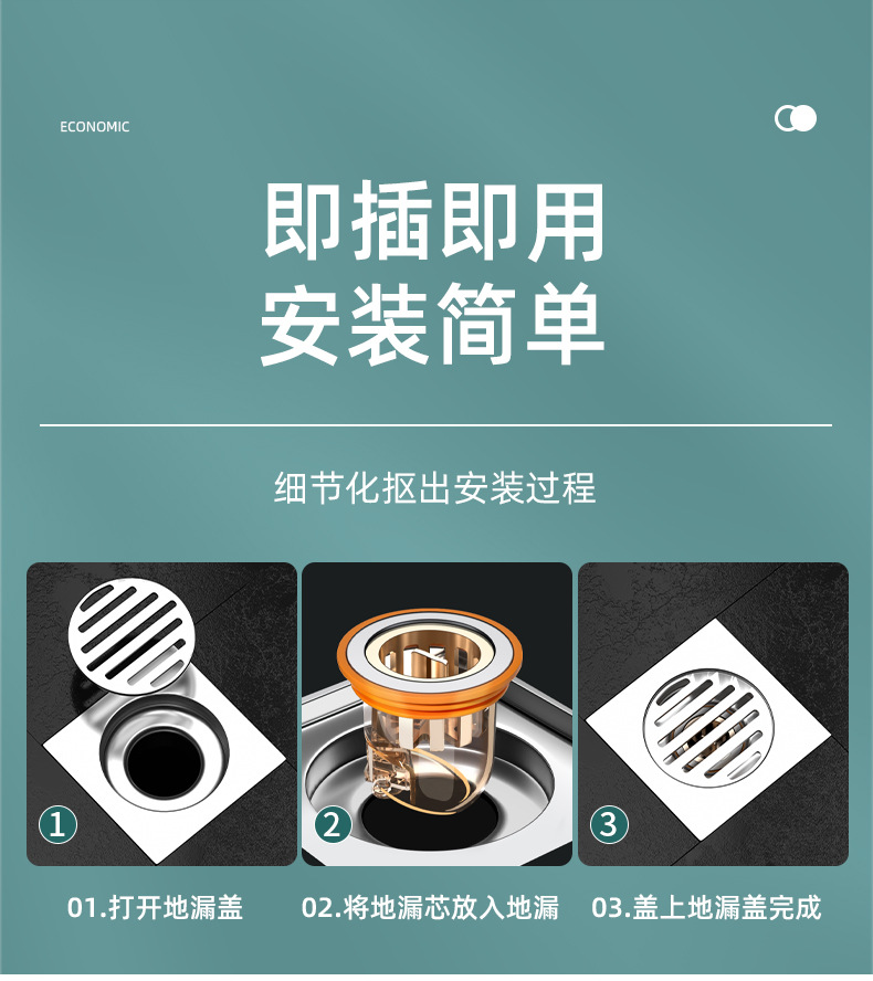 「拍1发2!9.9元到手2个」厨房地漏防臭器 卫生间下水道防臭堵口器密封内芯盖防虫居家日用通用厨房用品