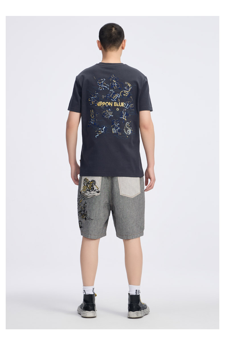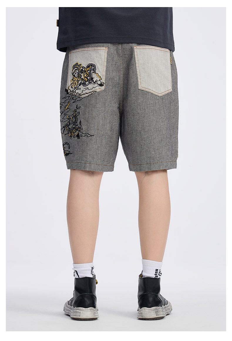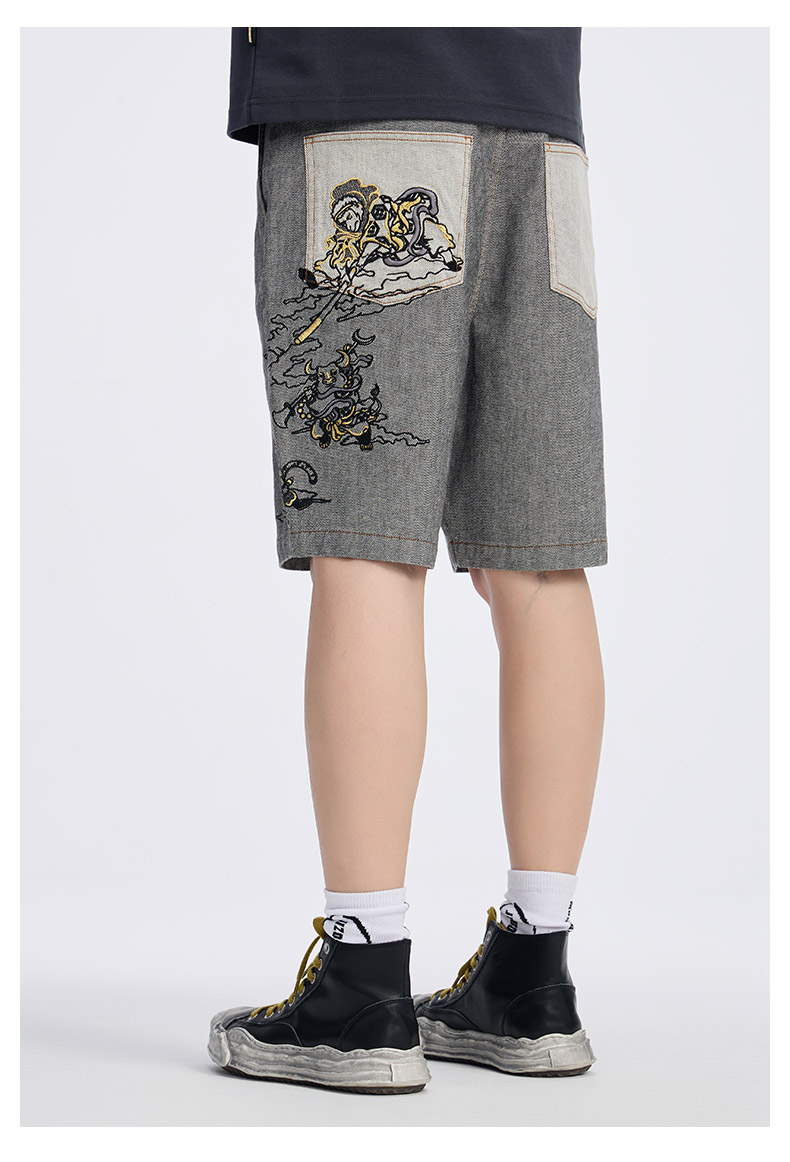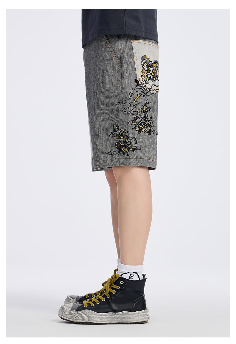 ONIARAI/鬼洗25春夏新品泥棒蓝十二神绣花宽松牛仔短裤男 25N0544
