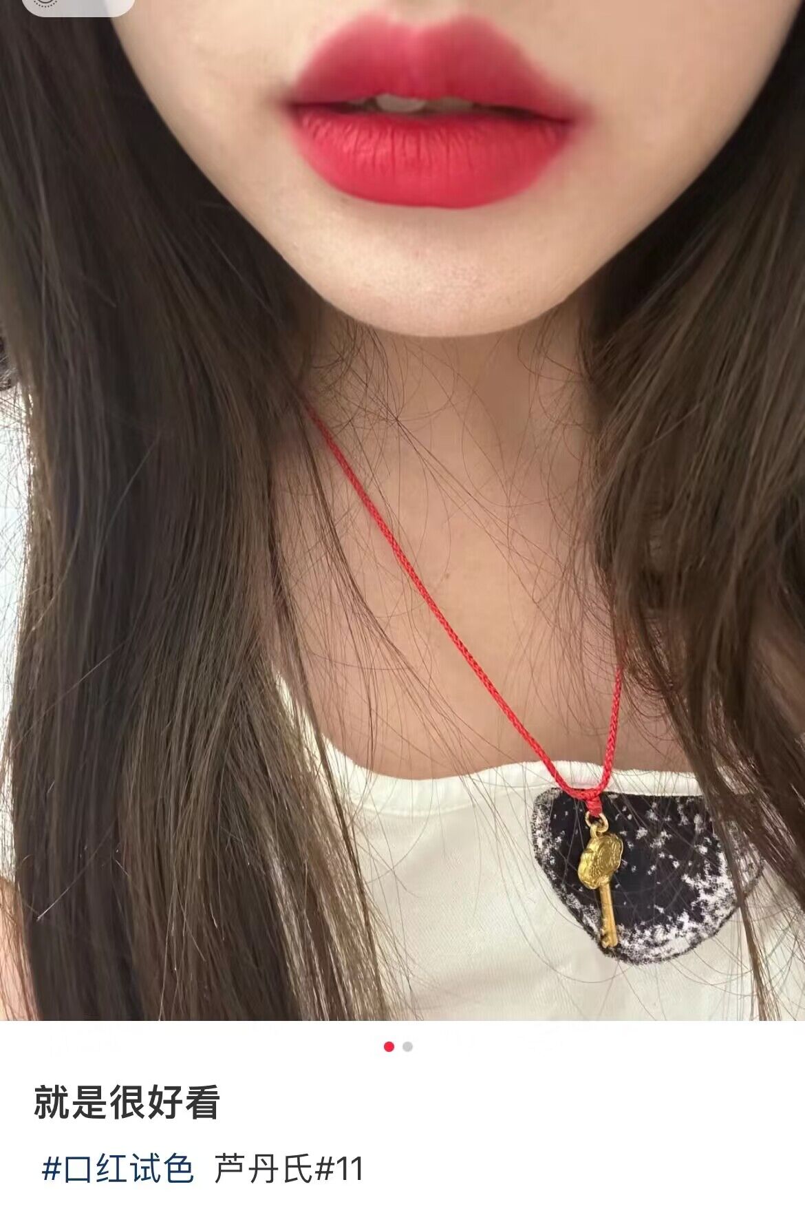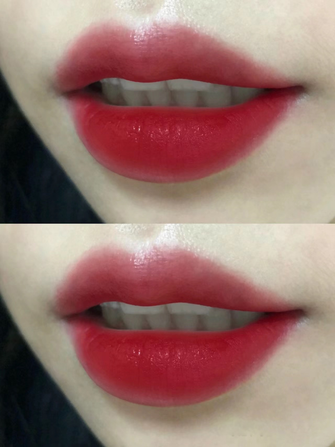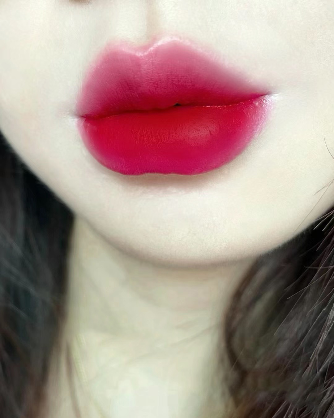 很正宗的正红色,晕开后偏蓝调,显白哦~