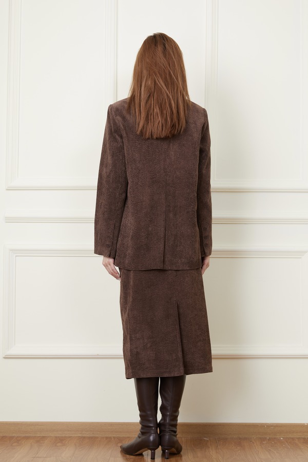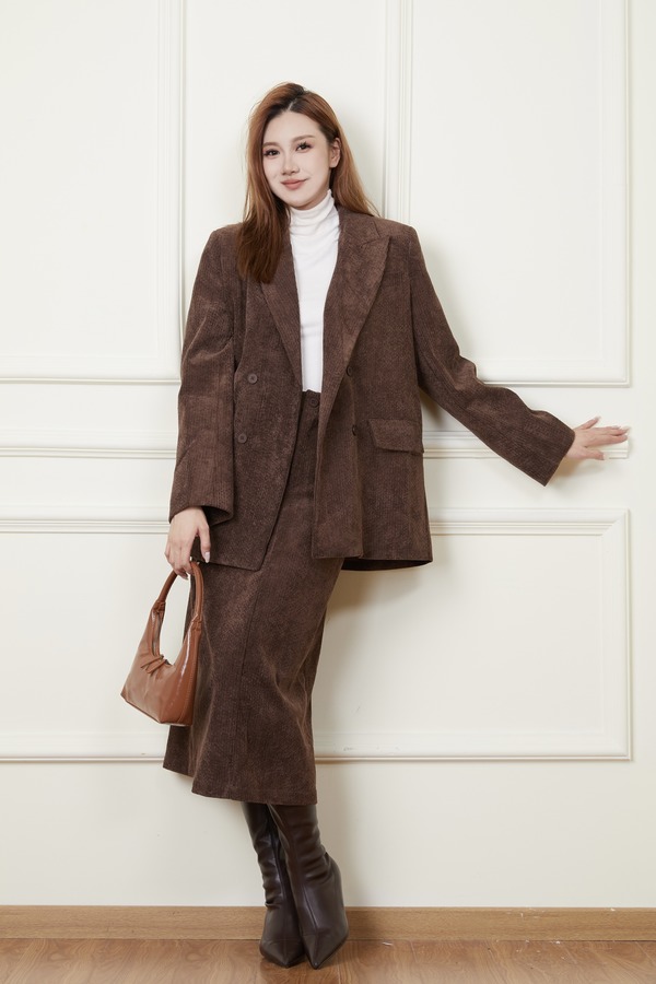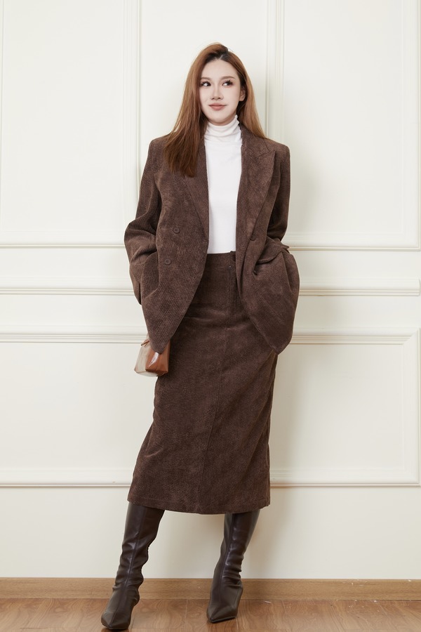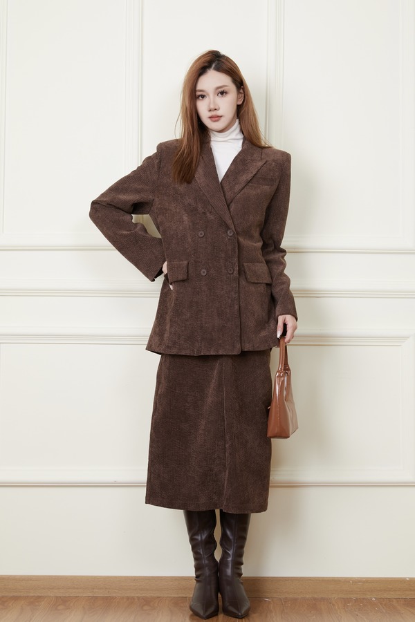 Le Malene 焦糖咖灯芯绒西装外套半裙套装 19323