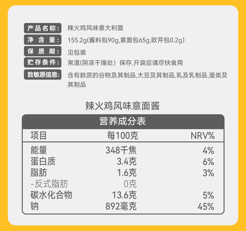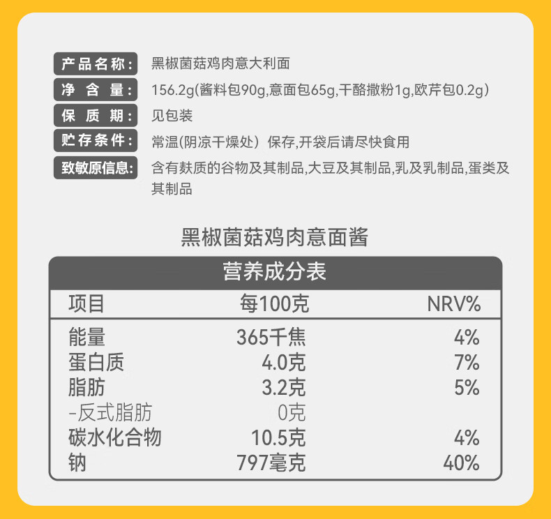 空刻黑椒菌菇鸡肉意面156.2g