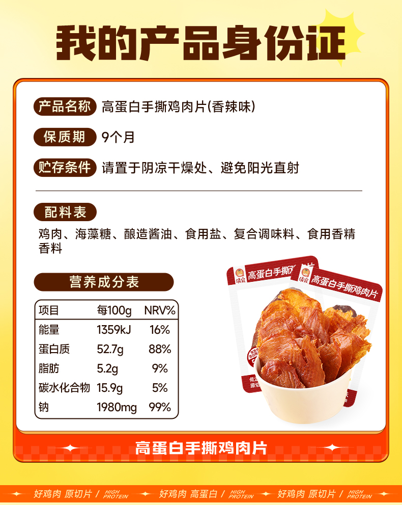 【满99-60】 高蛋白手撕鸡肉片14g*4袋