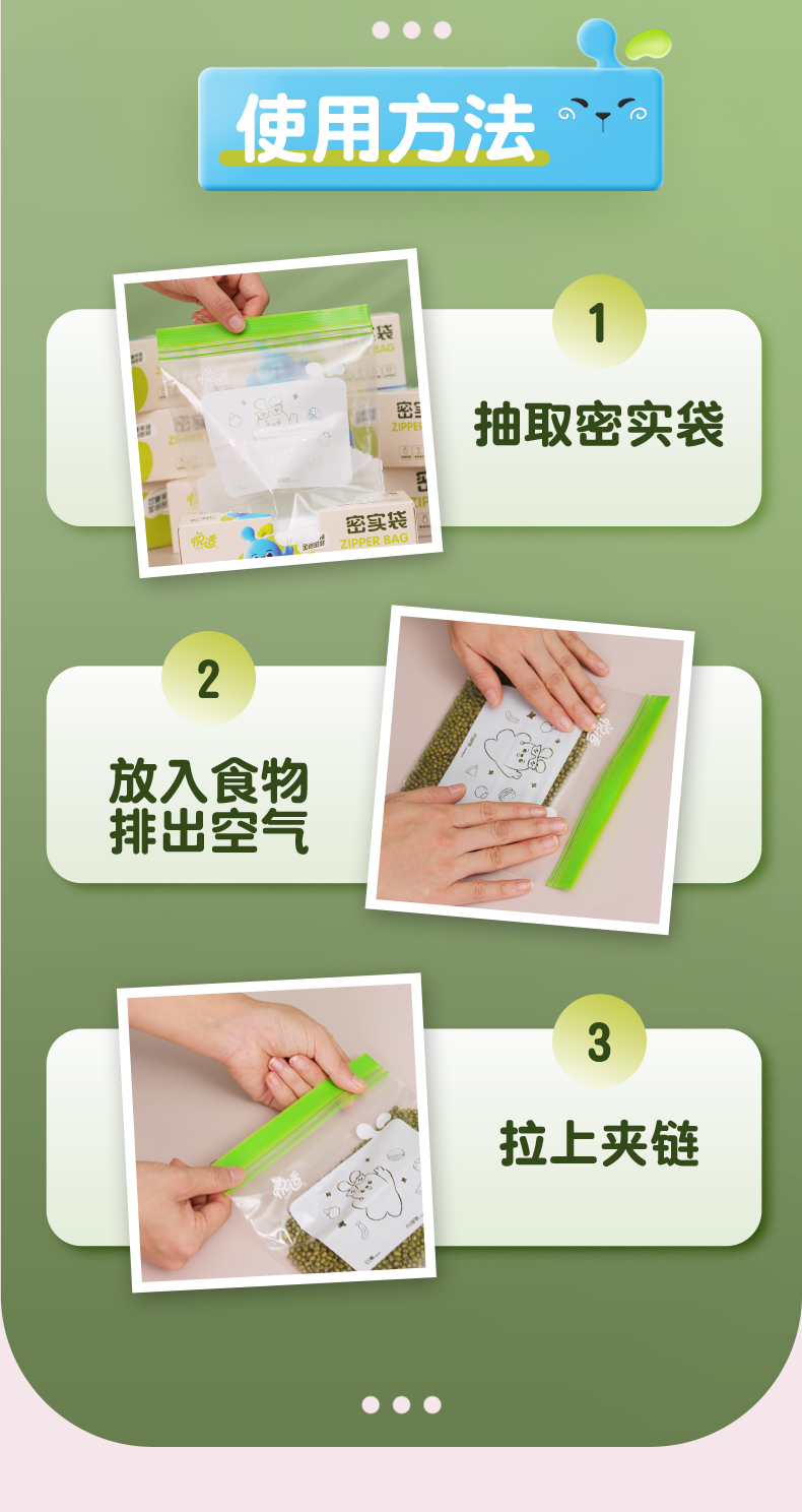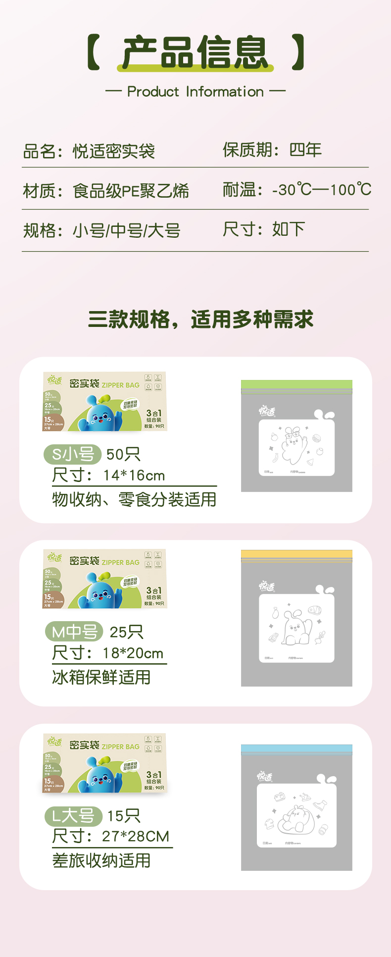 ZE6261(盒装)悦适三合一组合装密实袋(90只装)