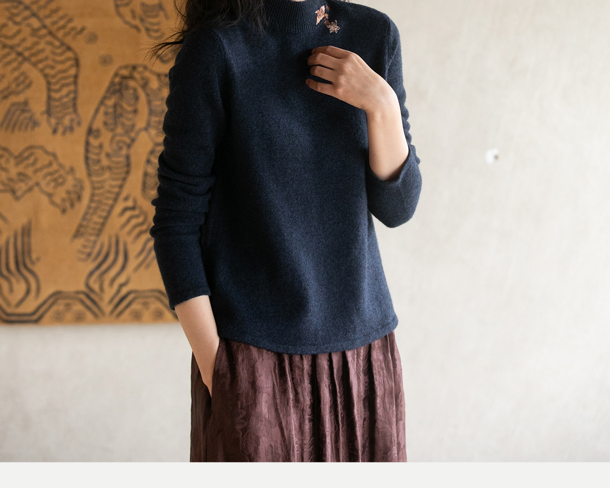 【*回归】牧衣游原创进口牦牛绒手绣毛织套头衫毛衣女 且随风
