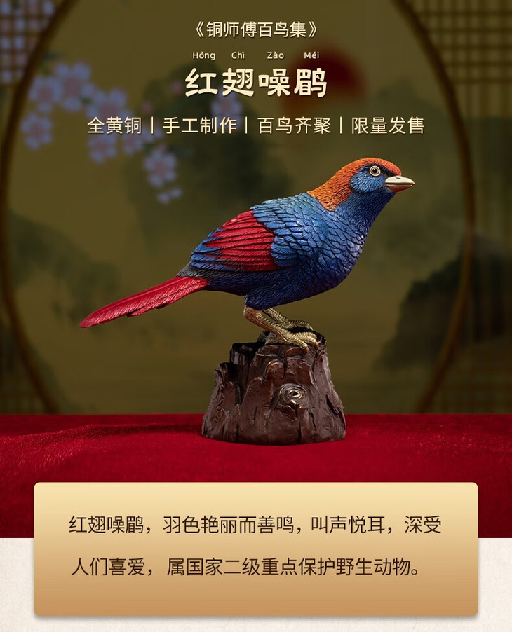 《铜师傅百鸟集》之红翅噪鹛铜工艺品 办公室客厅桌面家居饰品