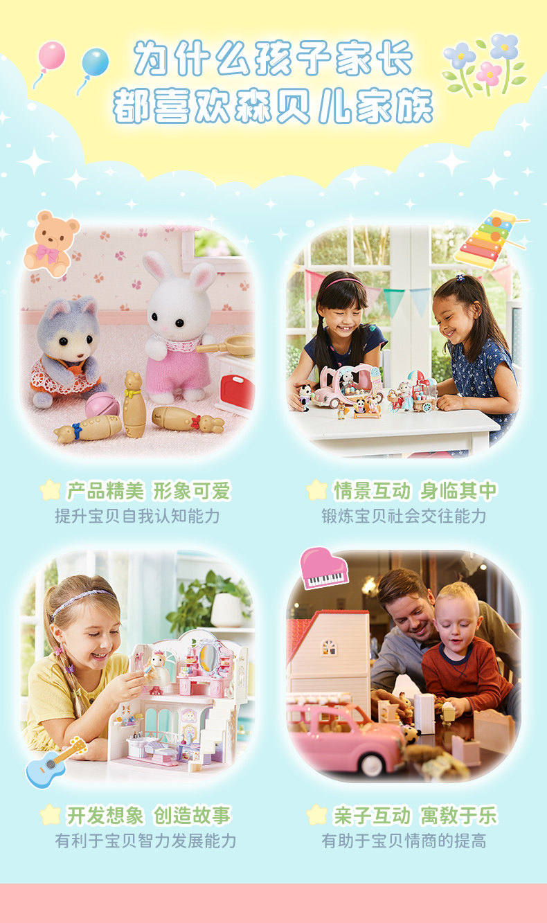 森贝儿家族过家家女孩玩具公仔娃娃公主儿童生日礼物波斯猫宝宝