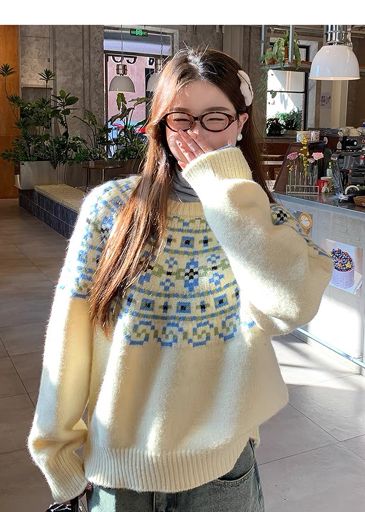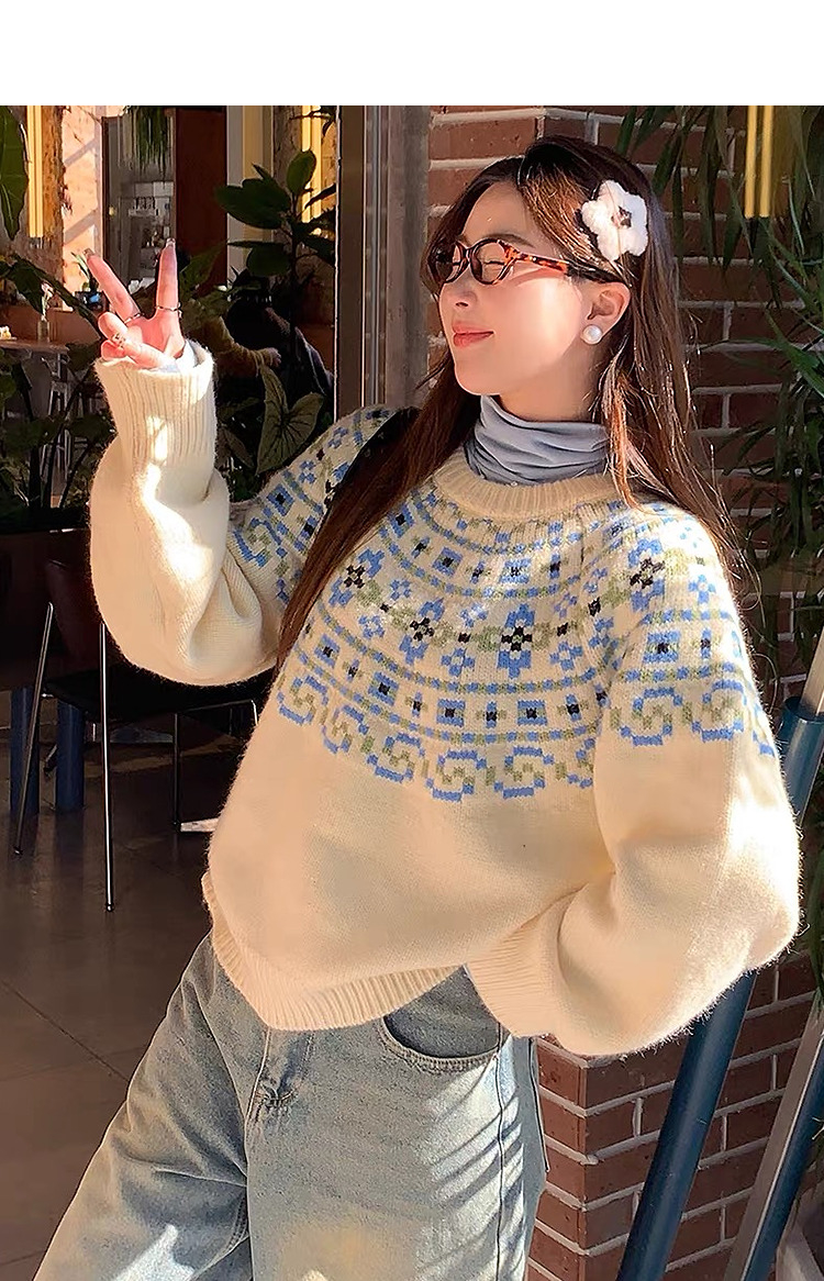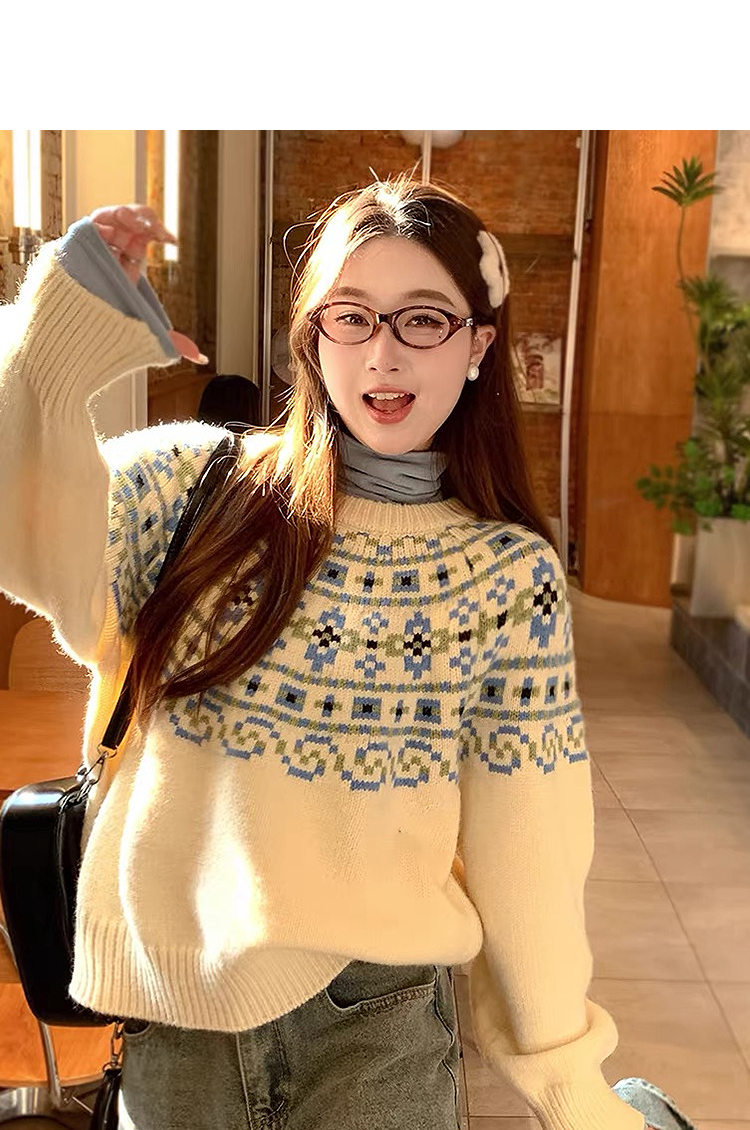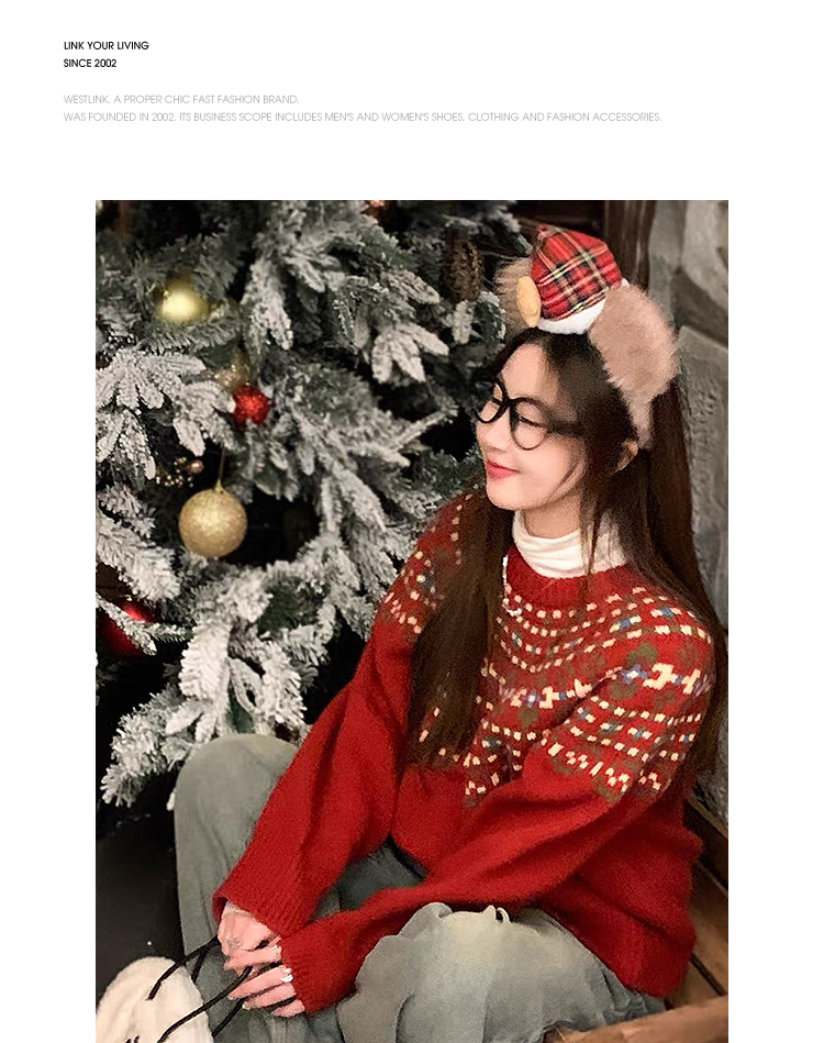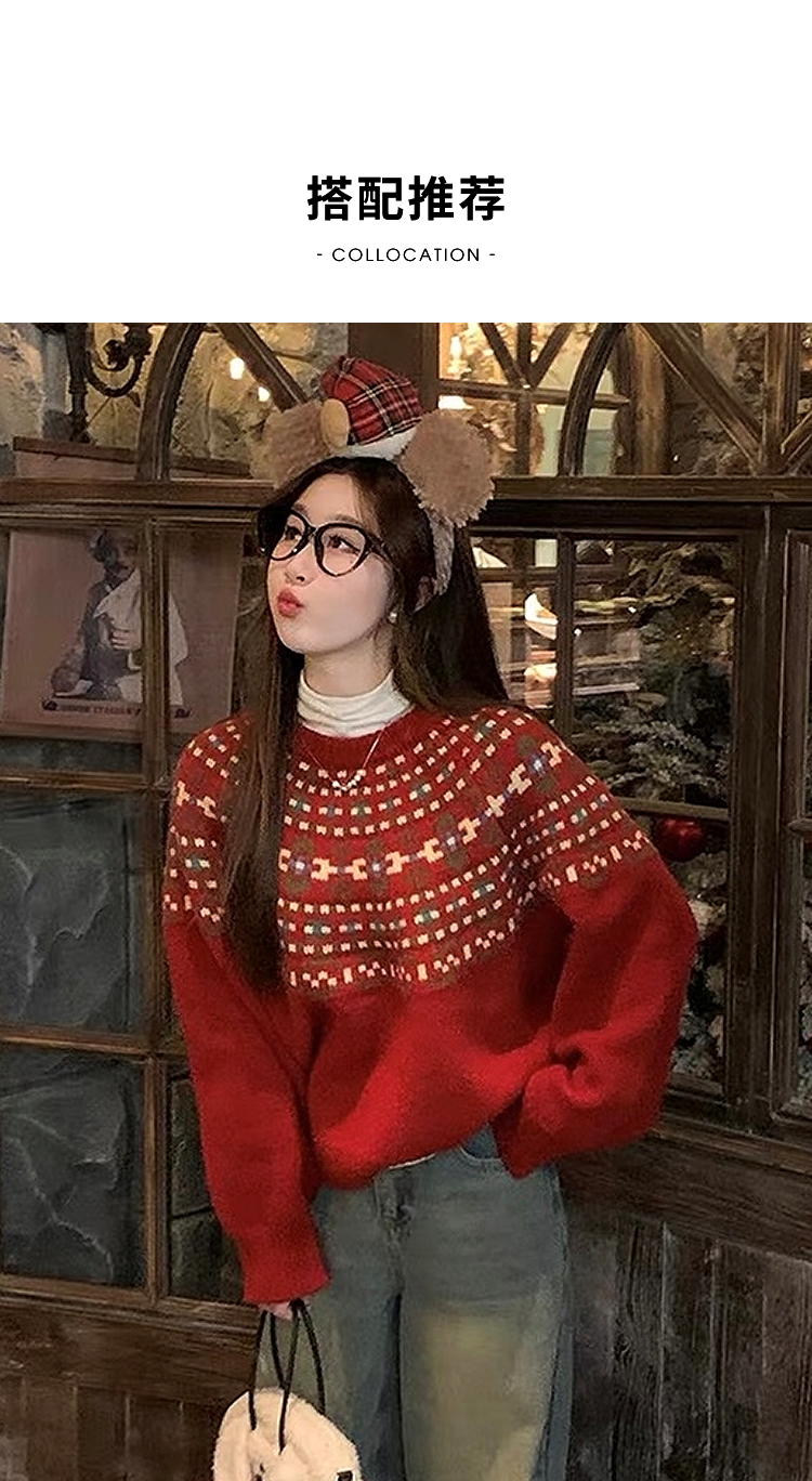 西遇绵羊毛费尔岛毛衫女2025冬季新款慵懒风宽松软糯红色毛衣SS060020