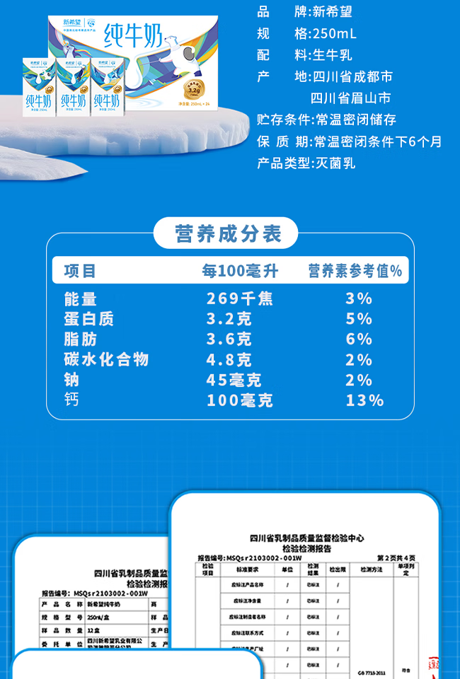 新希望盒装纯牛奶 250ml*24/件