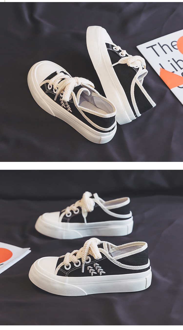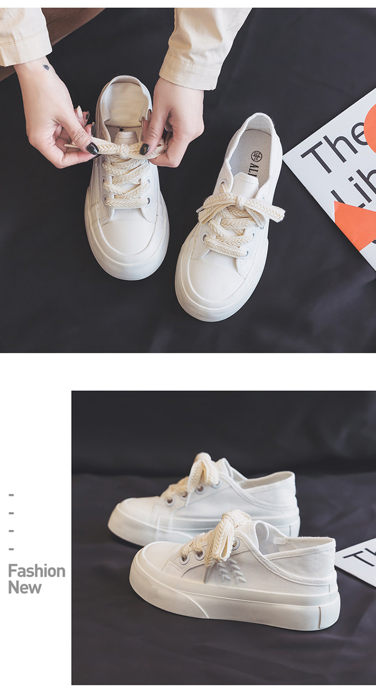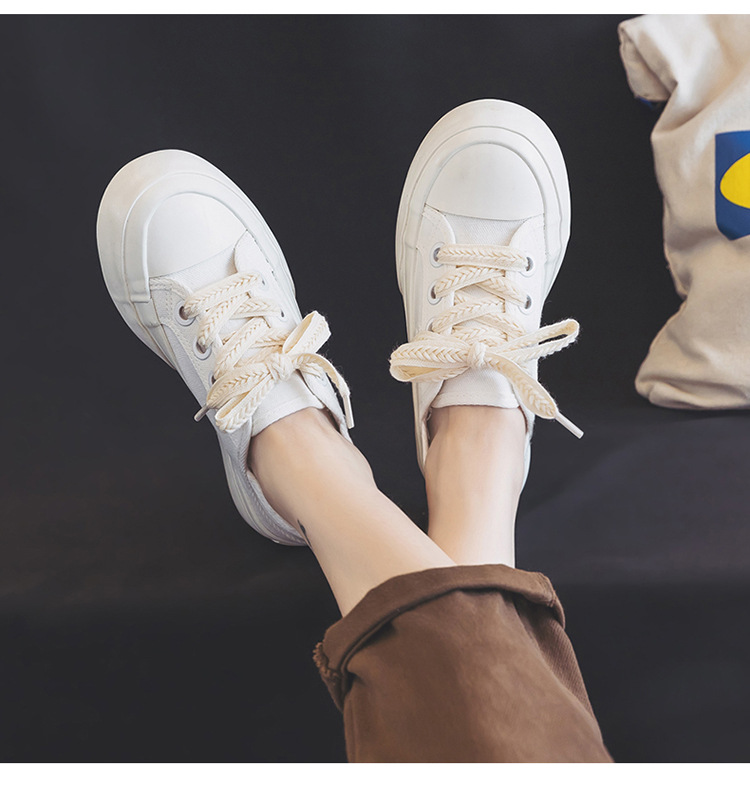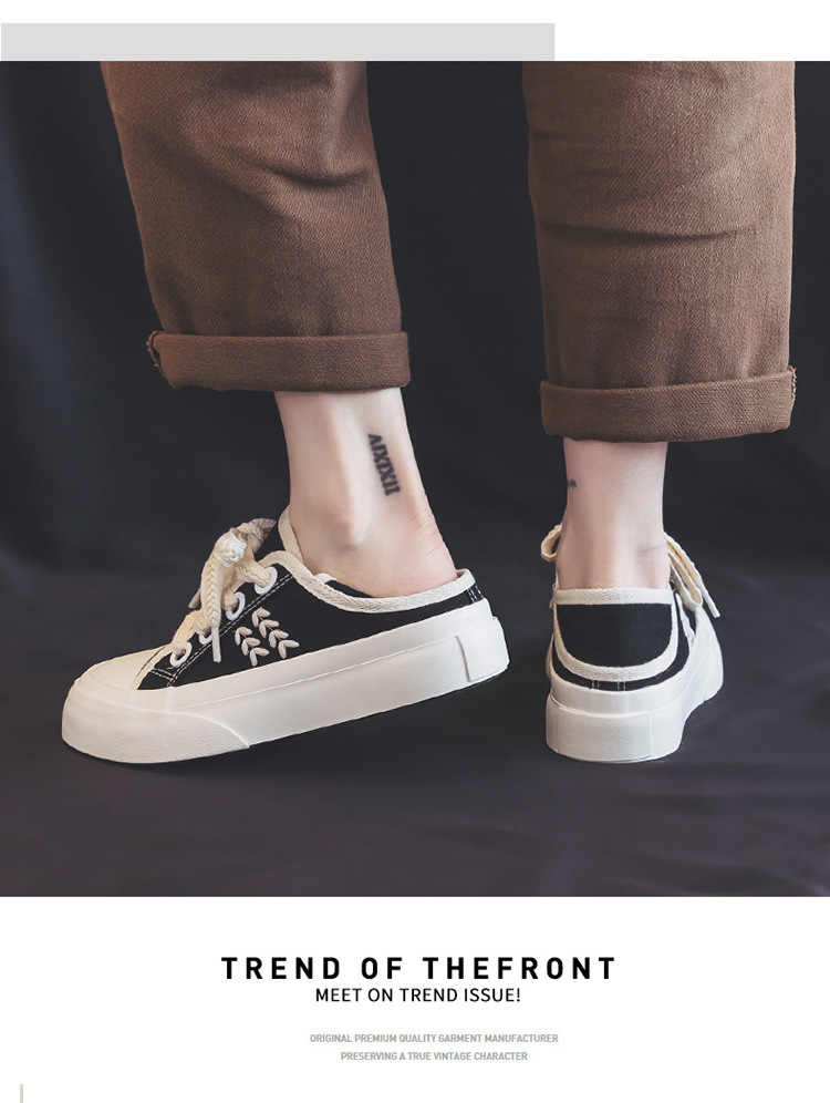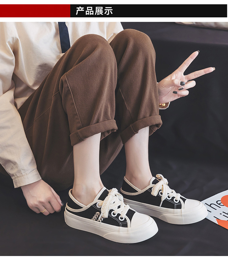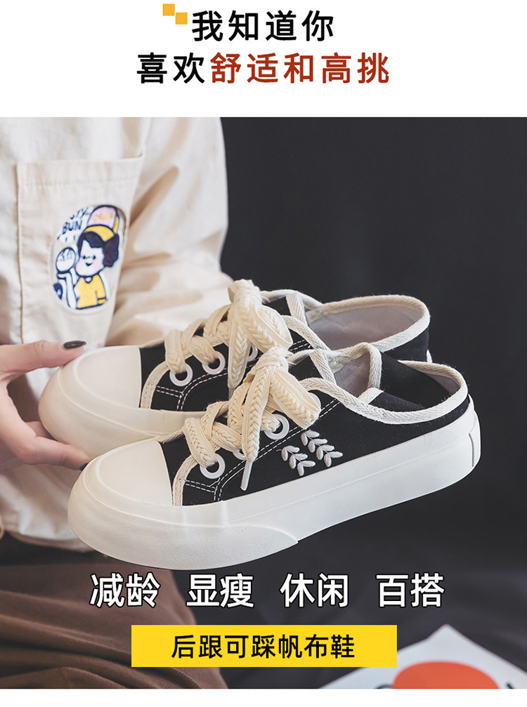 【新款透气百搭麦穗鞋带帆布鞋】两穿厚底设计,可踩一脚蹬休闲板鞋女。时尚百搭,适合各种场合穿着,透气舒适,脚步更自由,展现个性与魅力!