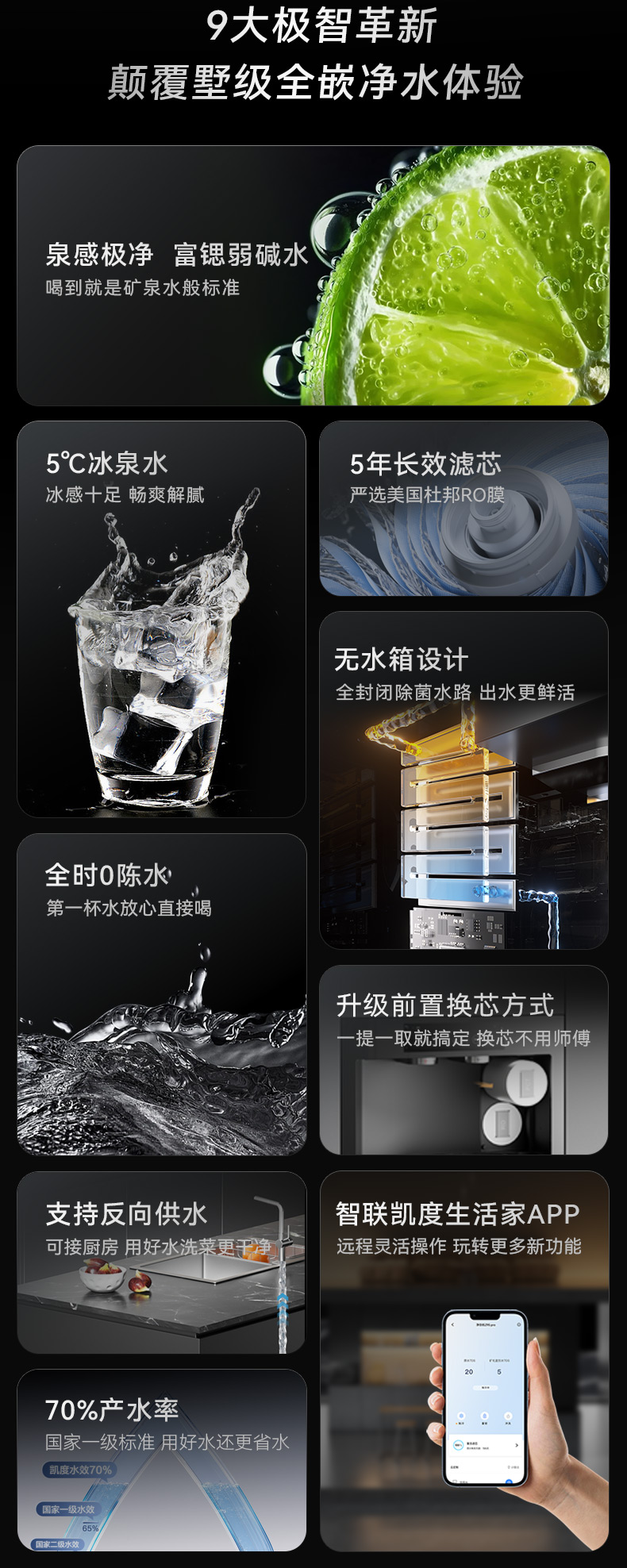 凯度嵌入式直饮水机即热净水器家用过滤管线净饮一体机ZS6