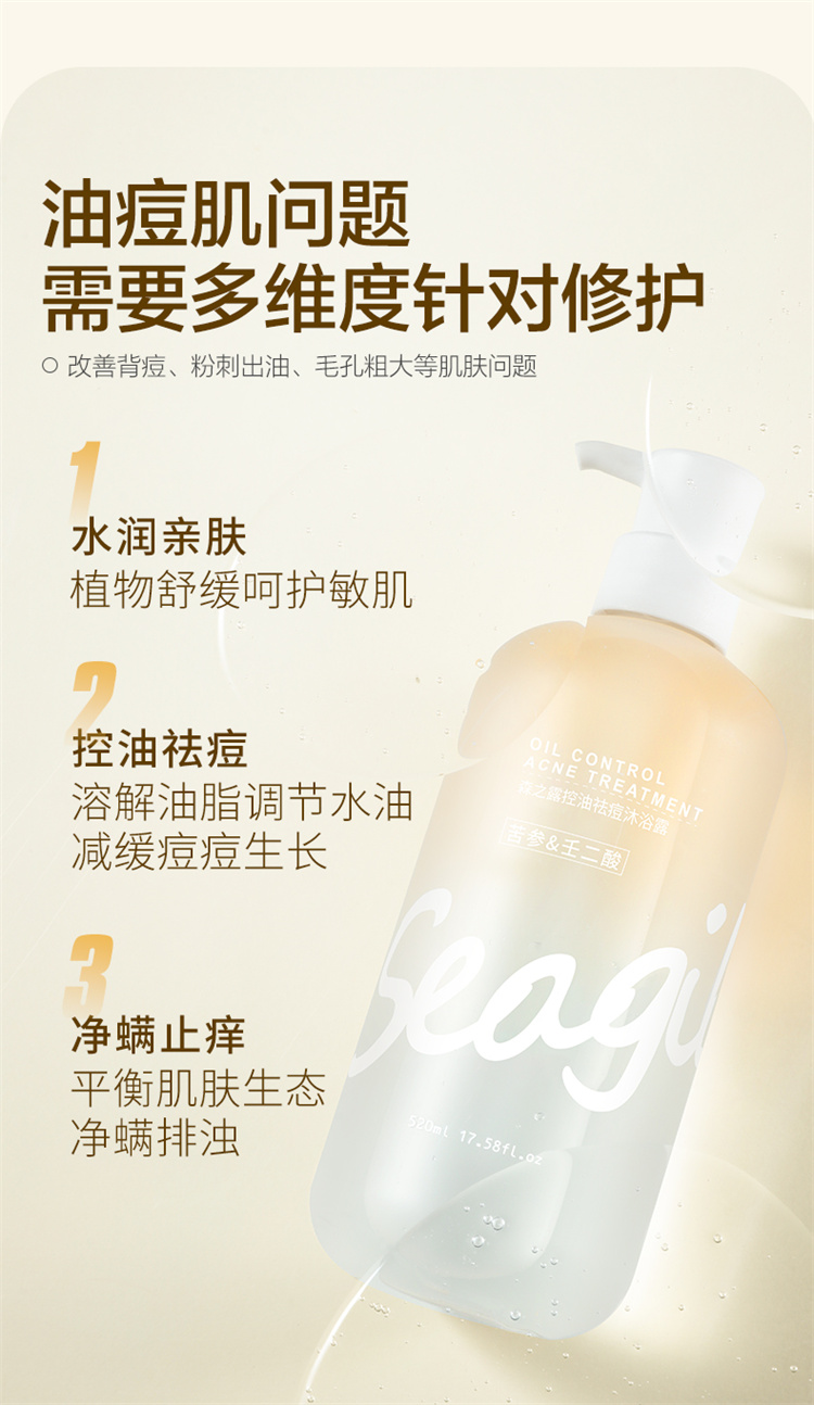 【自营】森之露除螨氨基酸控油止痒沐浴乳液 520ml(控油祛痘)