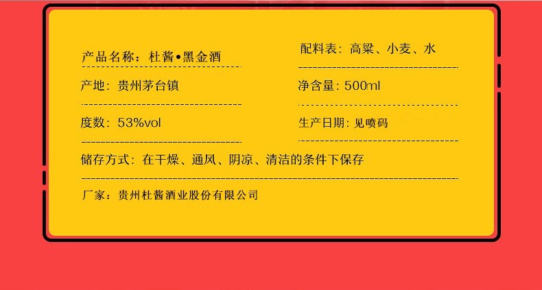 杜酱黑金酒 贵州茅台镇53度纯粮坤沙酱香型白酒 500ml*1支持自提