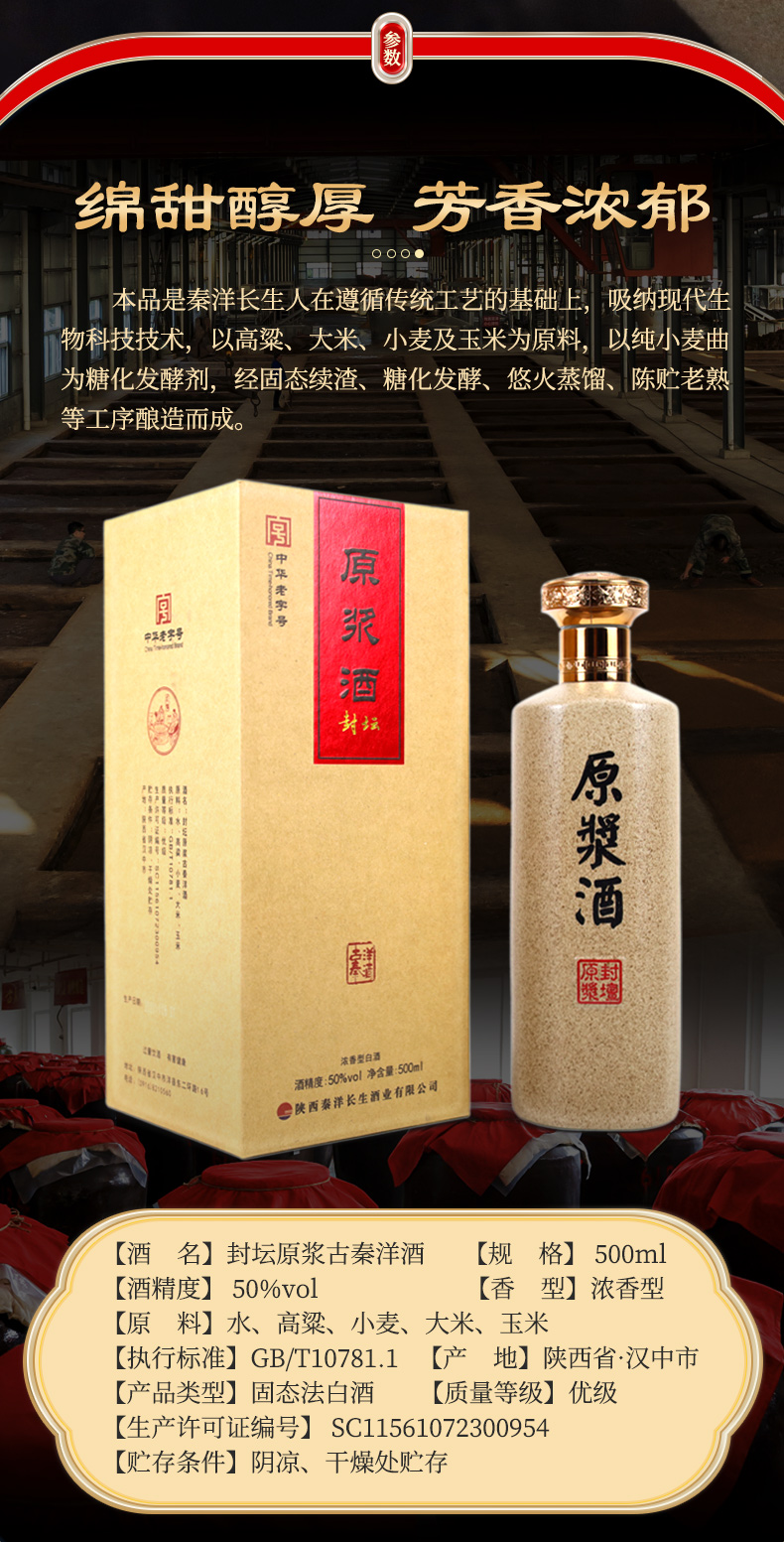 中华老字号“秦洋”牌 50°封坛原浆古秦洋酒