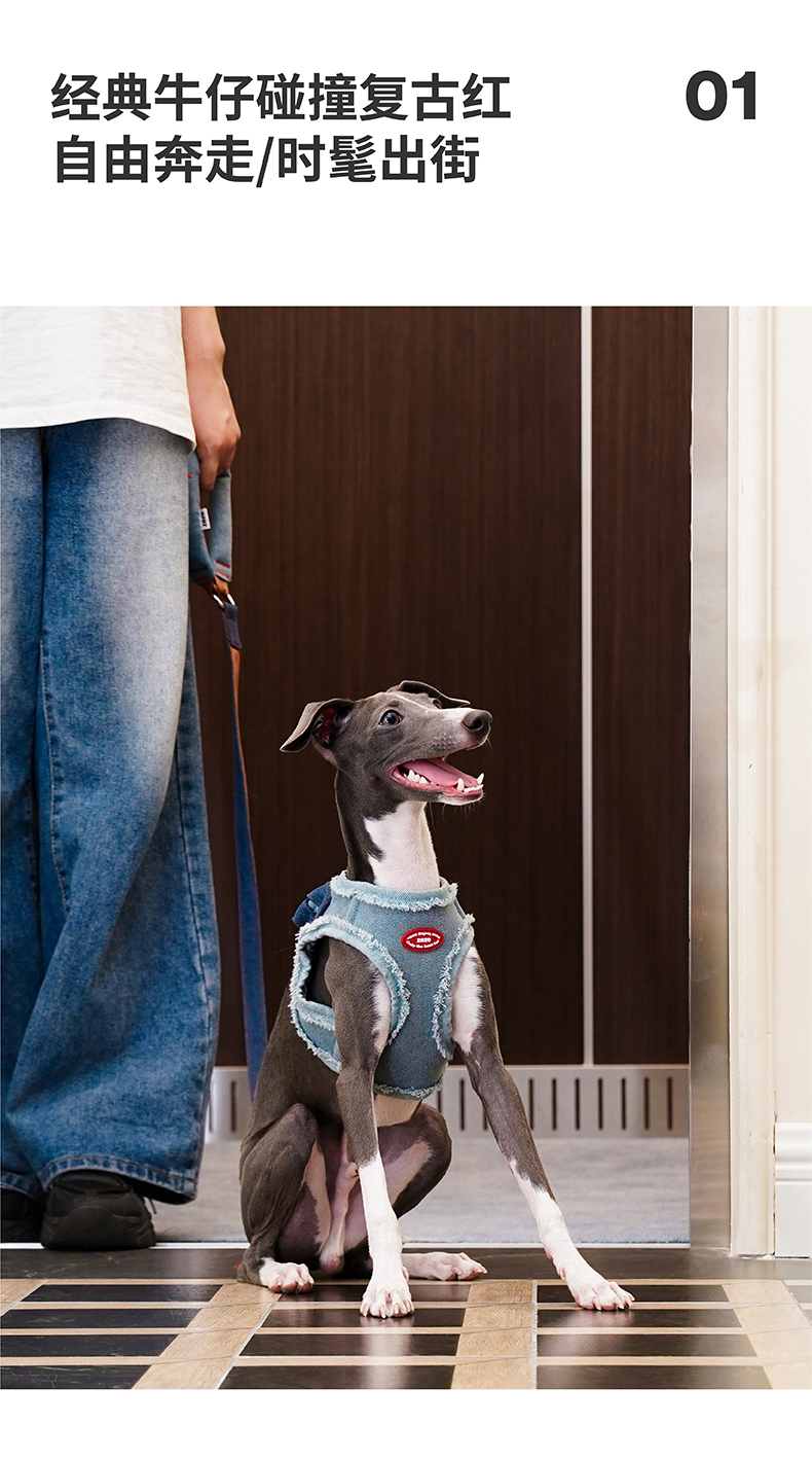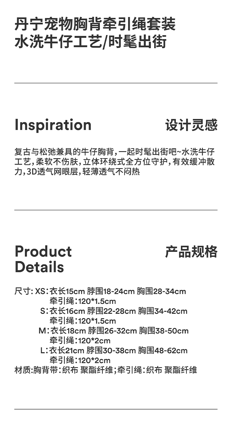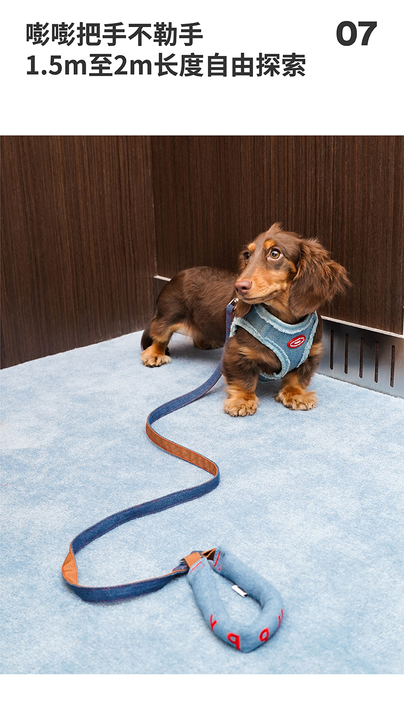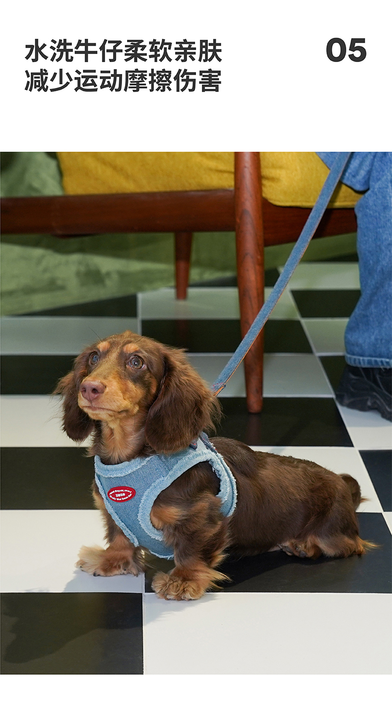 zeze丹宁宠物胸背牵引绳套装-B (包邮)