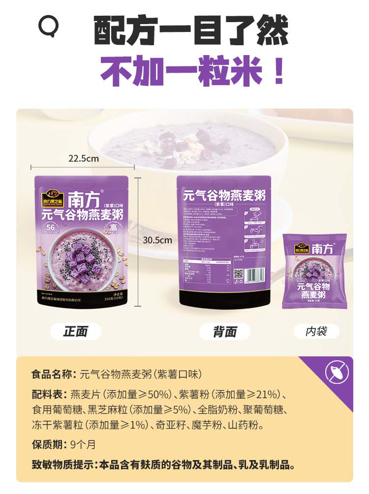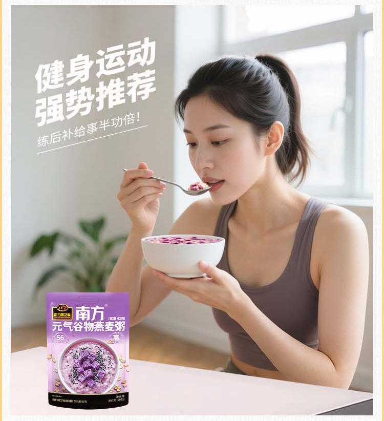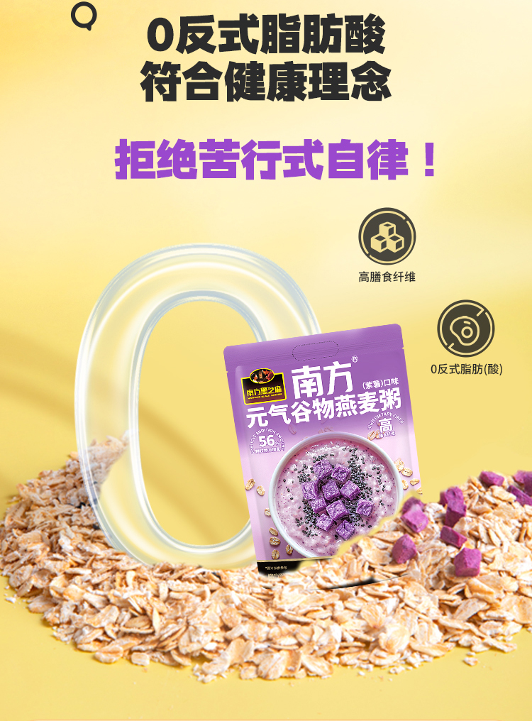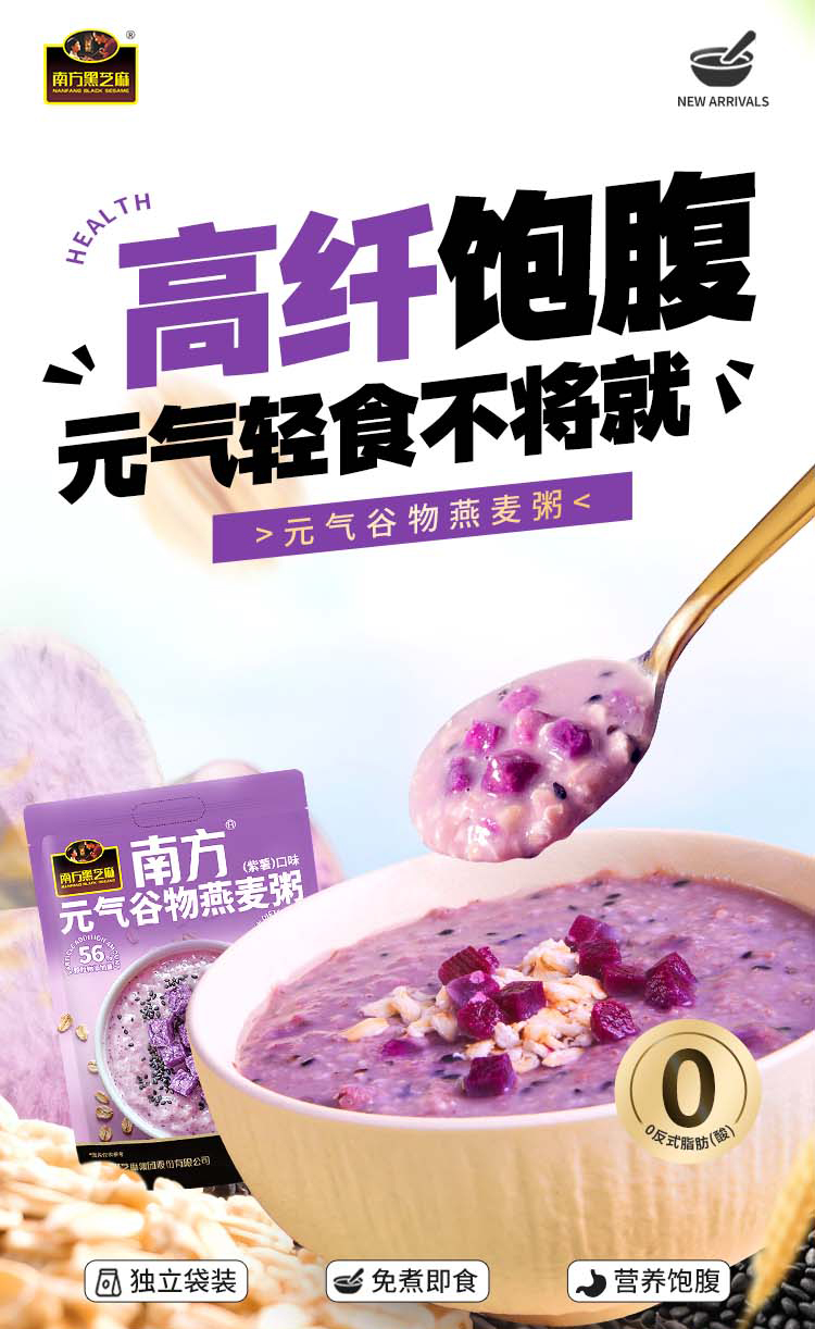 南方黑芝麻元气谷物燕麦粥(紫薯口味)350g高纤维0蔗糖低脂营养轻食代餐
