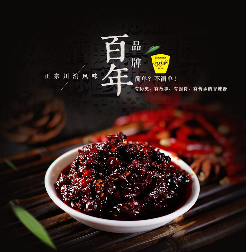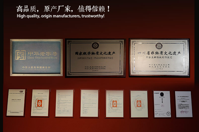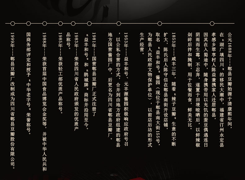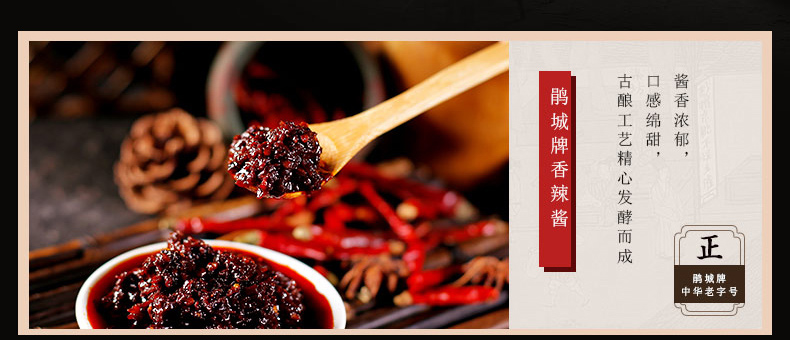 “鹃城牌“郫县豆瓣,中华老字号企业,源于1688年,国有控股公司,郫县豆瓣行业龙头企业和行业标准化生产示范工厂,中国非物质文化遗产郫县豆瓣传统制作技艺传承企业。 获“中华老字号”、“中国非物质文化遗产