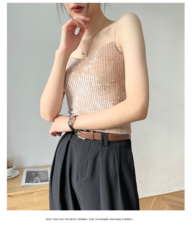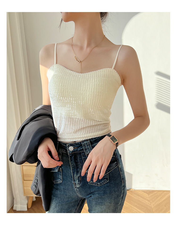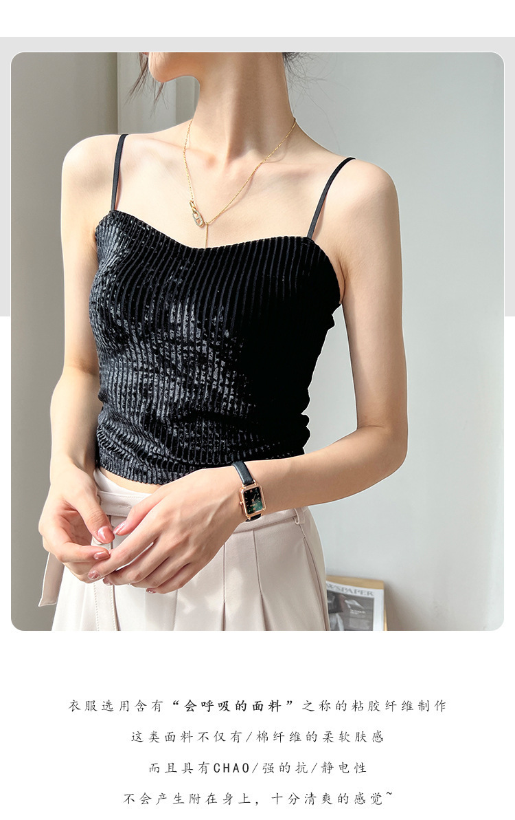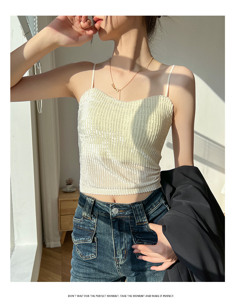 秋冬金丝绒小吊带背心女美背文胸一体打底带胸垫保暖上衣ins轻奢 商品图7