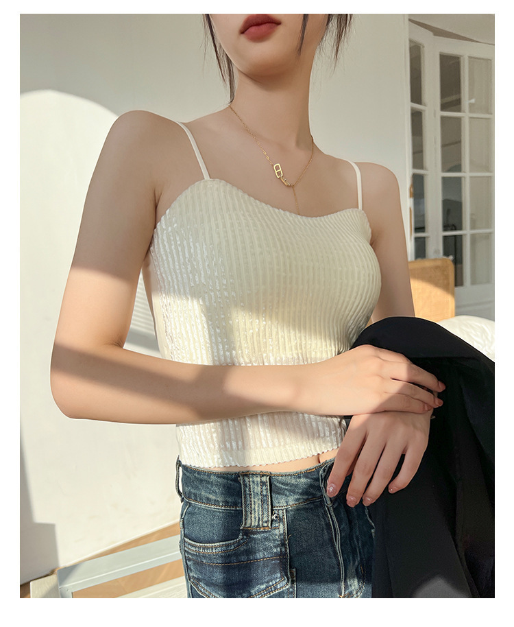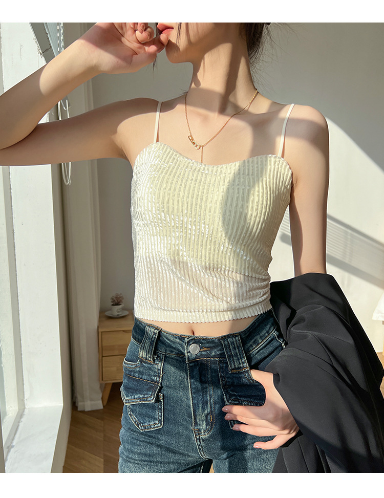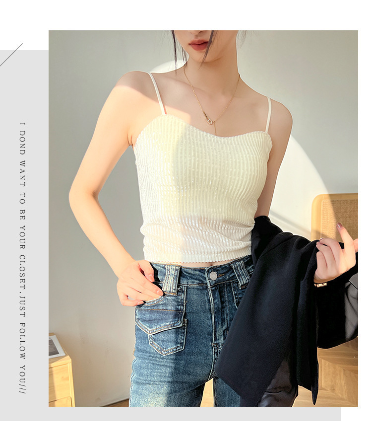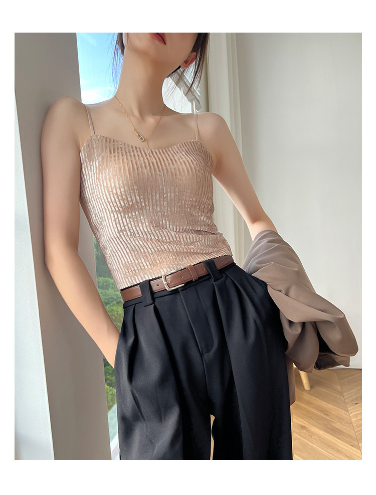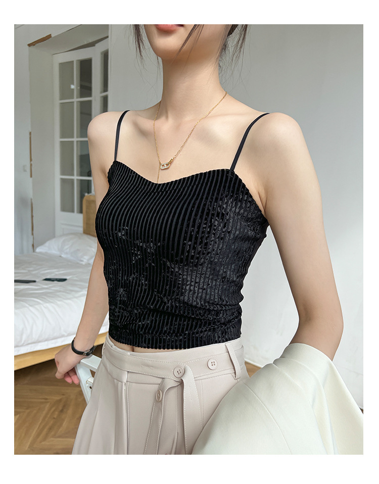 秋冬金丝绒小吊带背心女美背文胸一体打底带胸垫保暖上衣ins轻奢 商品图7