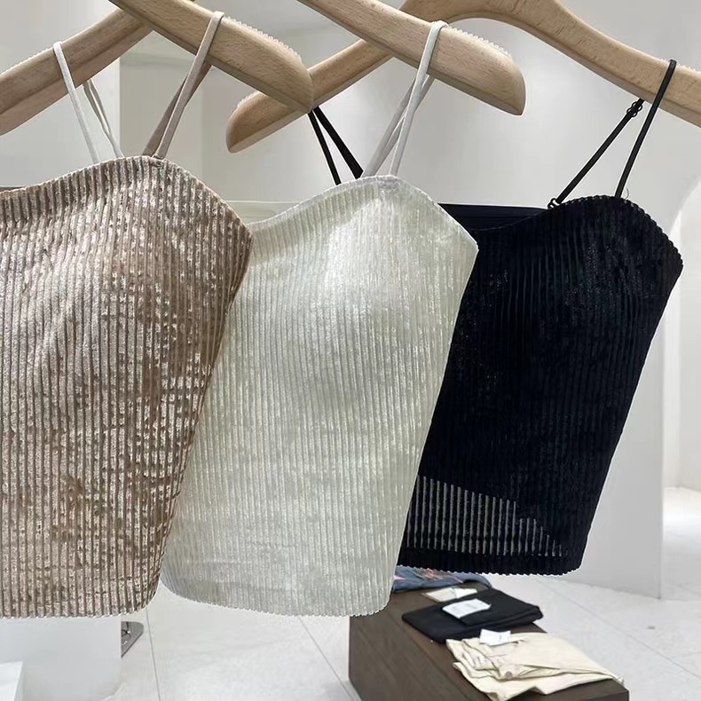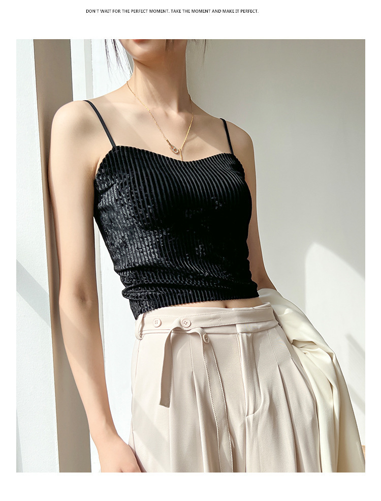 秋冬金丝绒小吊带背心女美背文胸一体打底带胸垫保暖上衣ins轻奢 商品图1