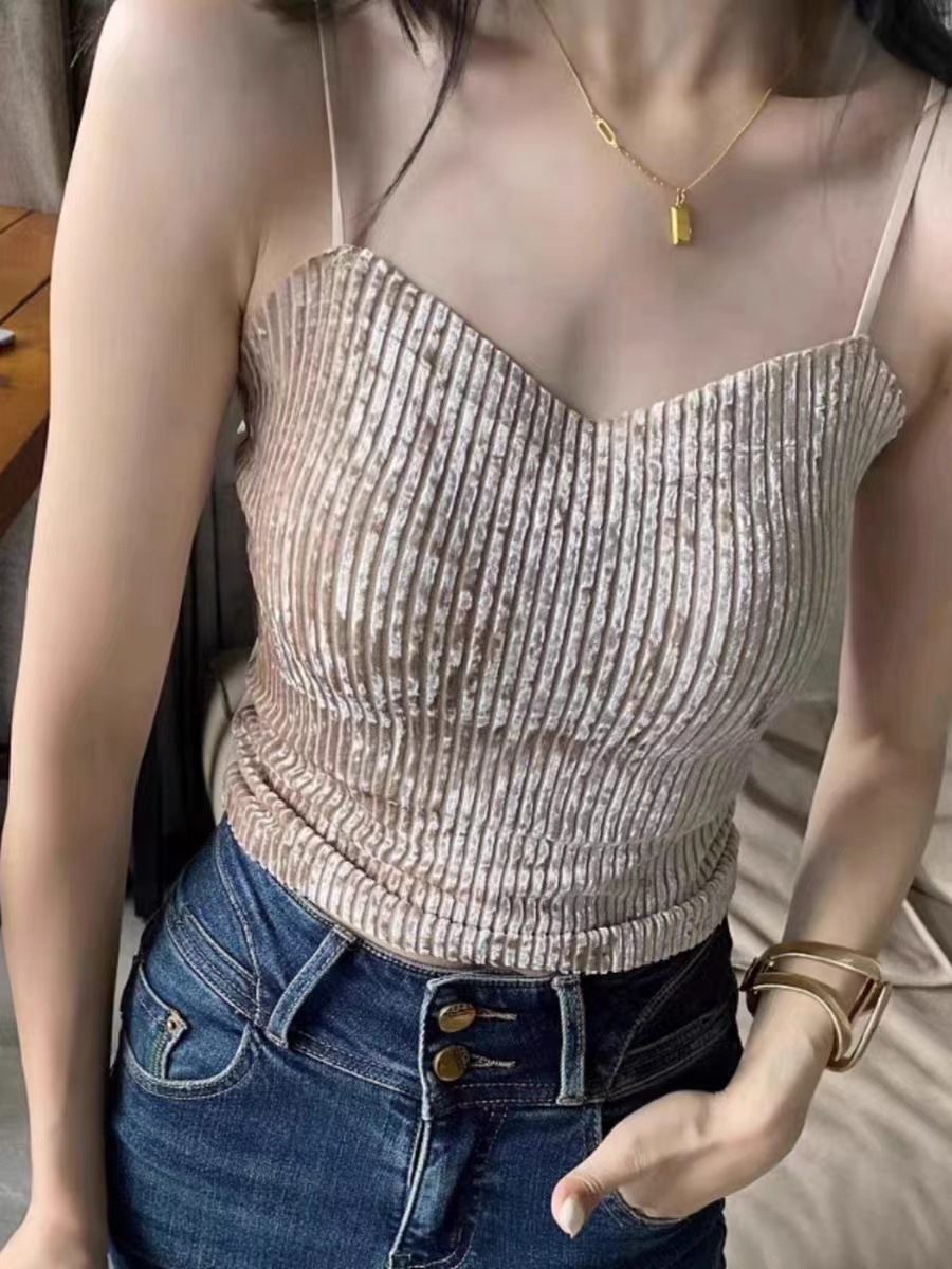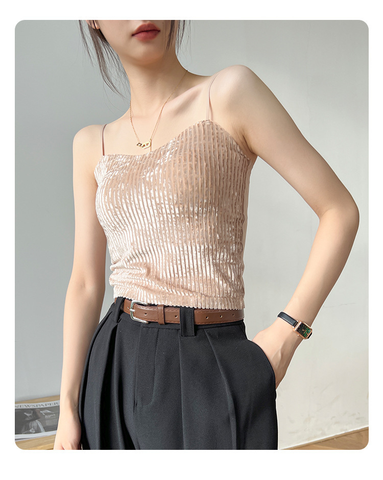 秋冬金丝绒小吊带背心女美背文胸一体打底带胸垫保暖上衣ins轻奢 商品图0