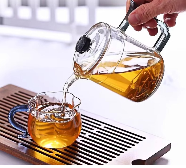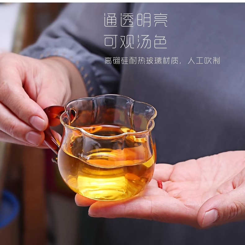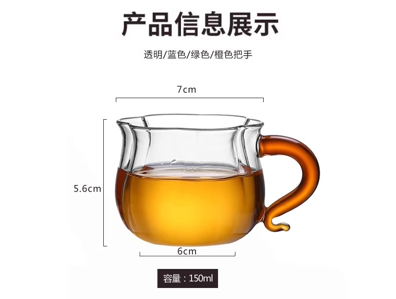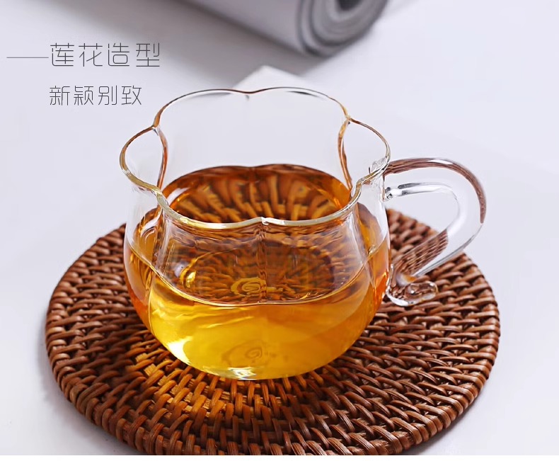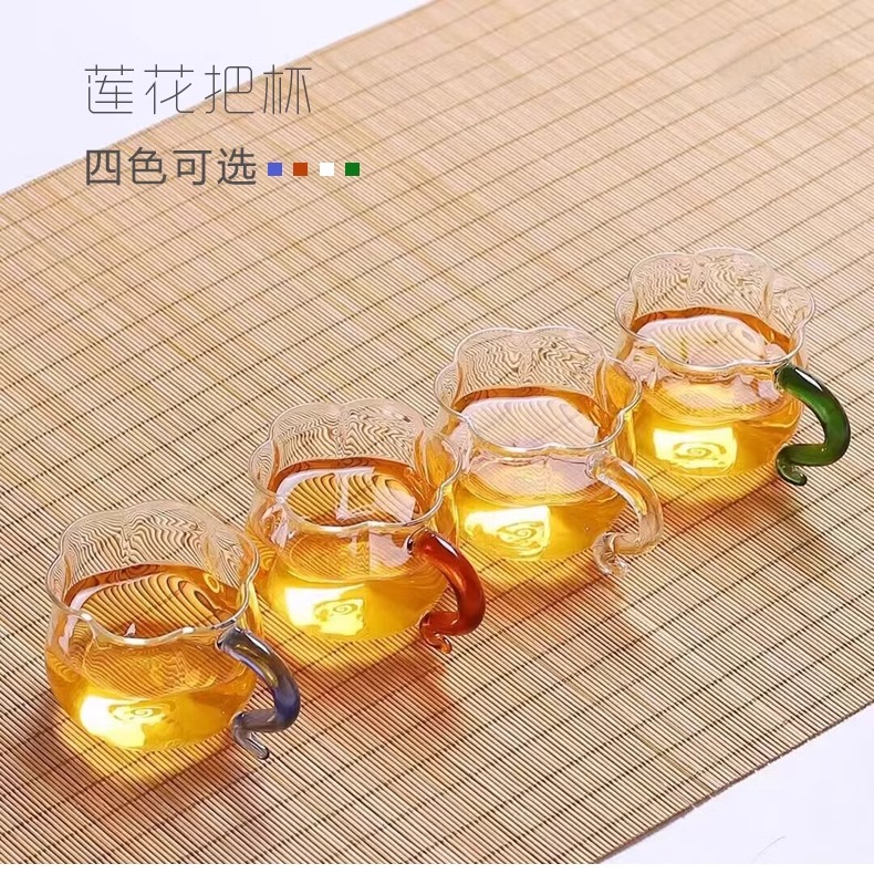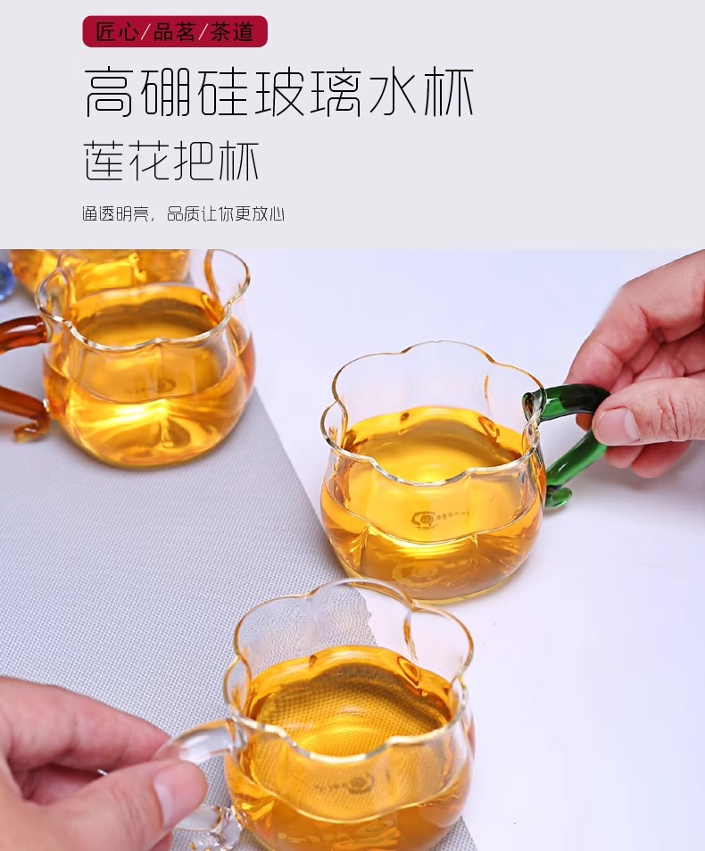 透明玻璃莲花杯带把无盖南瓜杯茶杯水杯牛奶杯早餐杯子花茶杯家用璃匠-莲花品杯双支装(琥珀色)