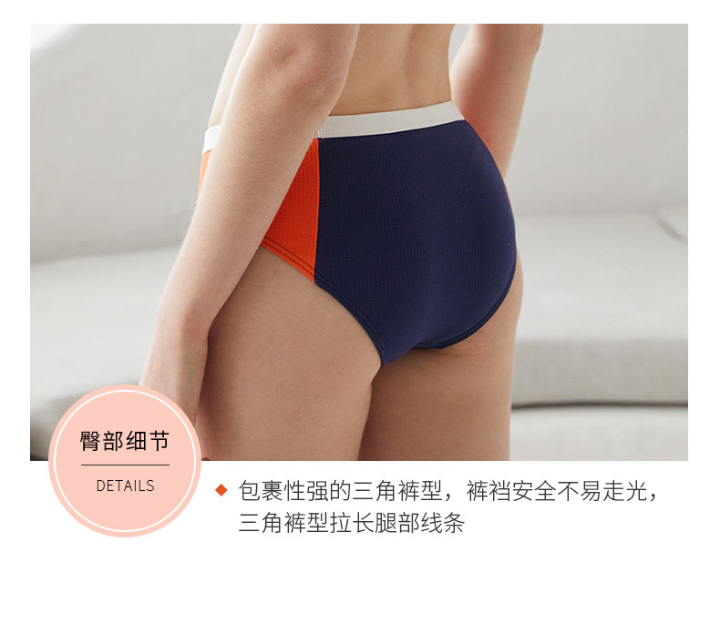 sisia比基尼泳衣女运动小胸聚拢蓝橙撞色时尚分体游泳衣