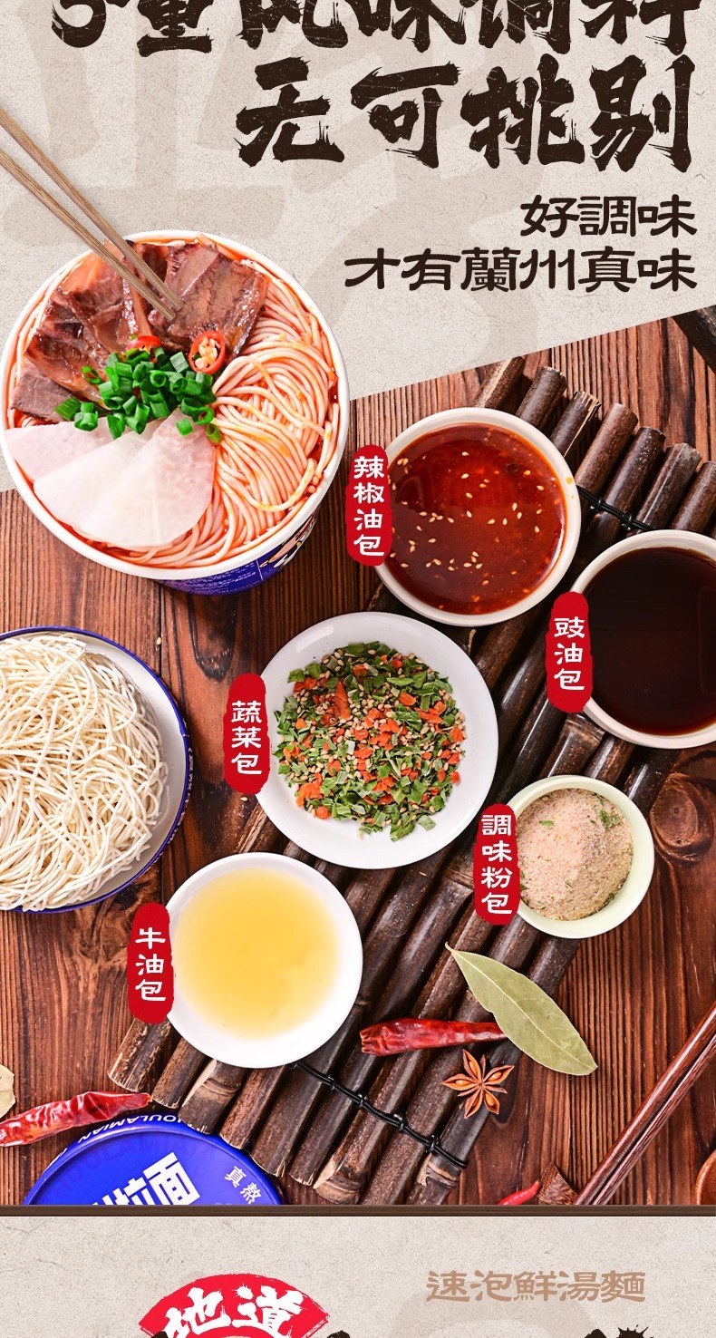 兰州牛肉拉面桶装非油炸方便拌面早餐夜宵懒人速食品整箱新款新品