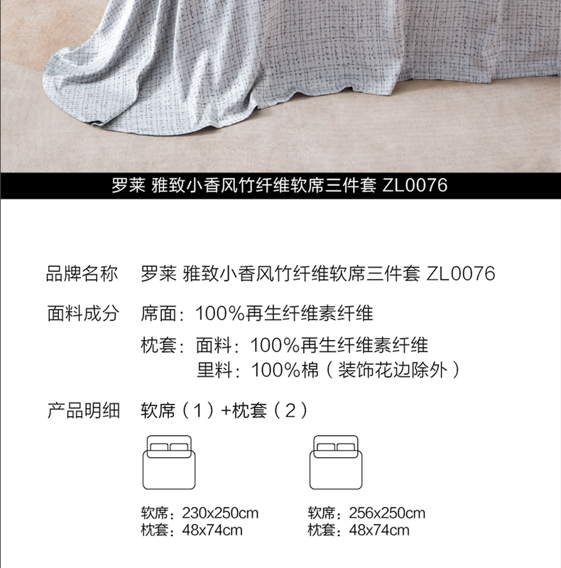 罗莱雅·致小香风竹纤维软席三件套ZL0076-3