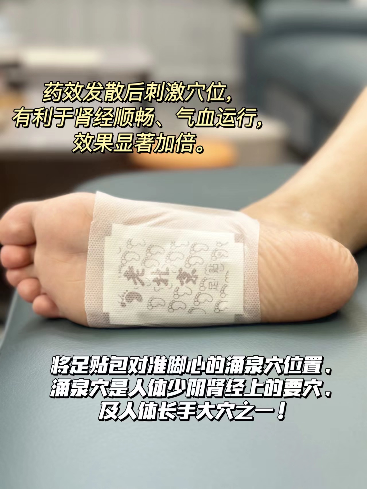贴在涌泉穴,药效发散后刺激穴位,