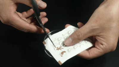 将印字光滑面粘在胶贴上,