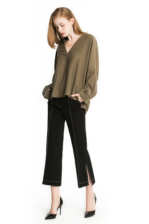 ROSEHOO 缝线开衩九分直筒裤 1161