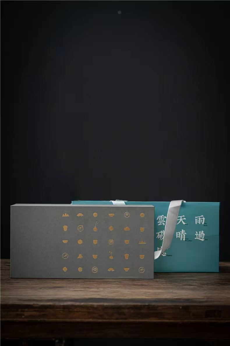 玉青瓷 般若系列 玉砂画面 一壶四杯一茶盘 茶盘包装 般若B(玉砂画面)