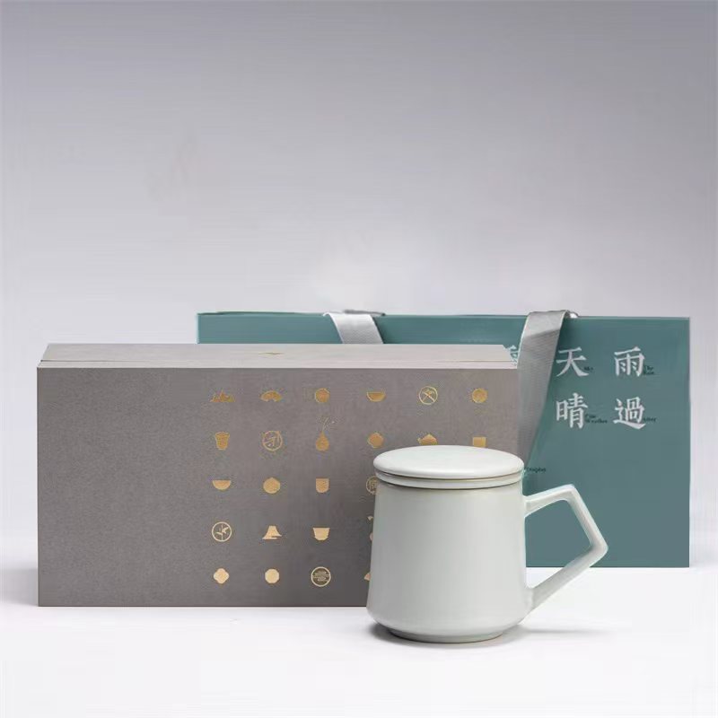 汝山明 马克杯 办公杯 水杯 茶漏三件套盖杯 汝窑开片 山明汝瓷飘逸杯