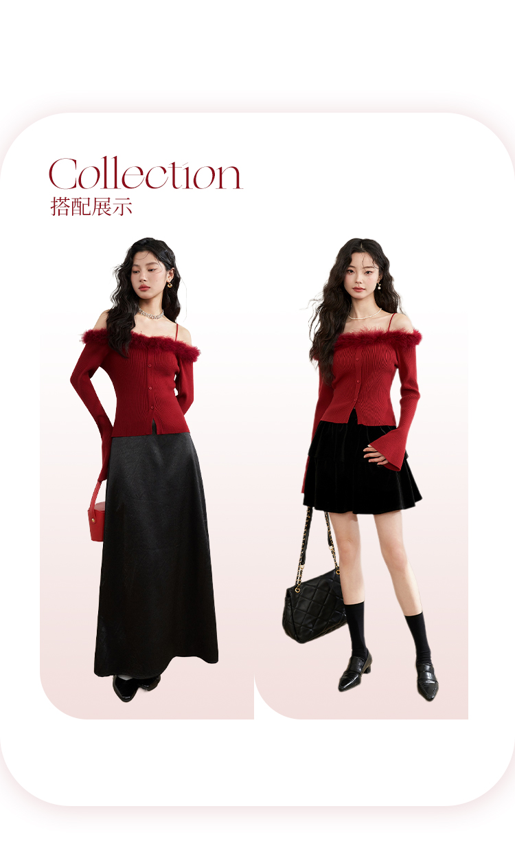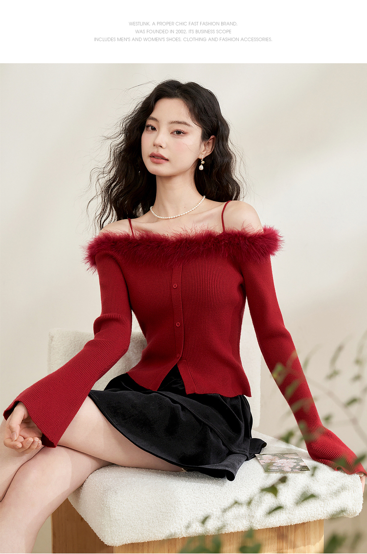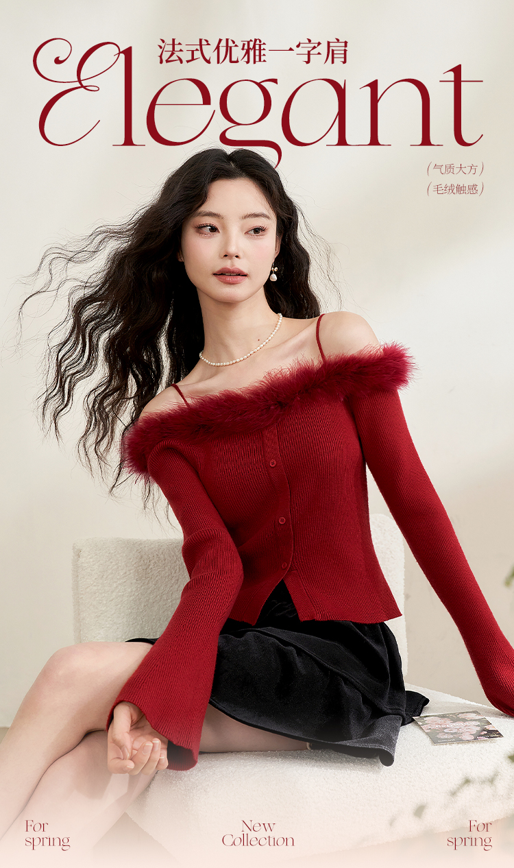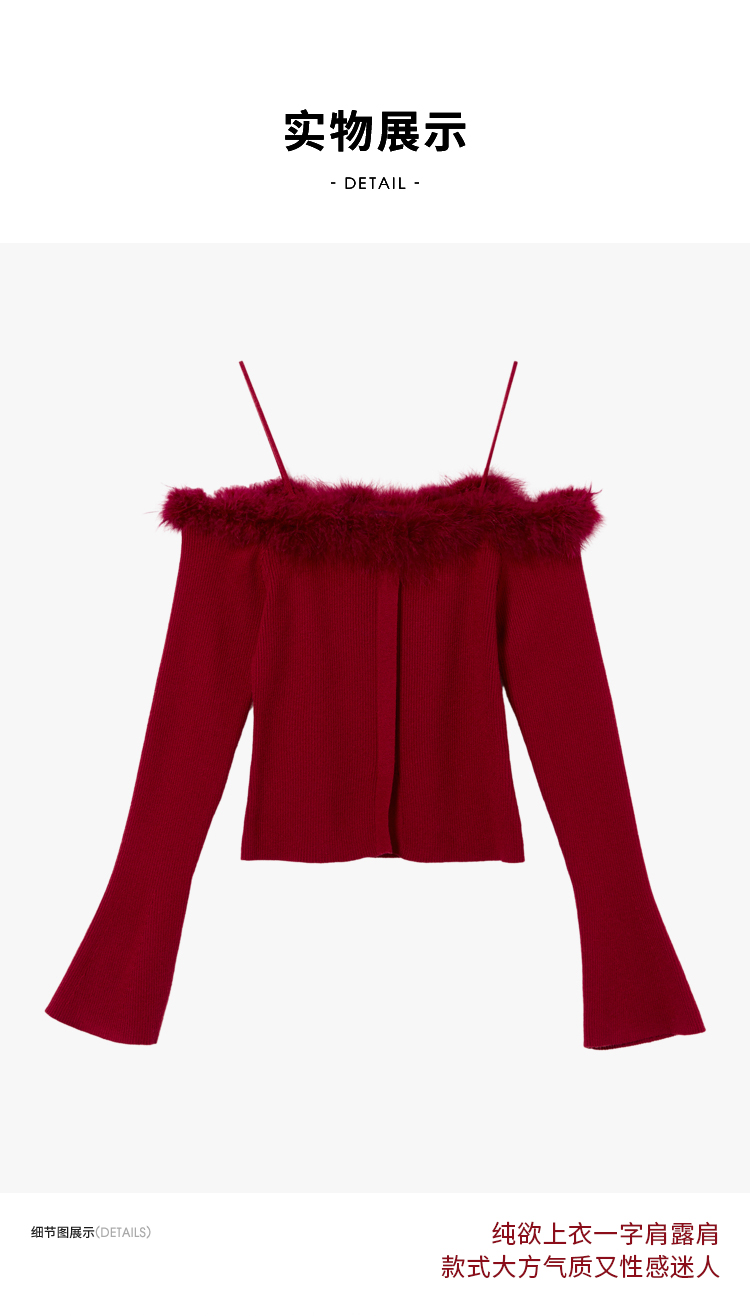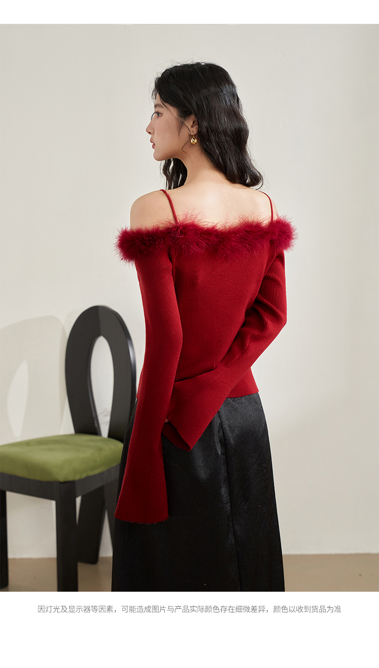 西遇法式纯欲一字肩毛衣女新款毛茸茸短款针织上衣10240043