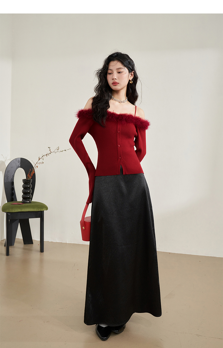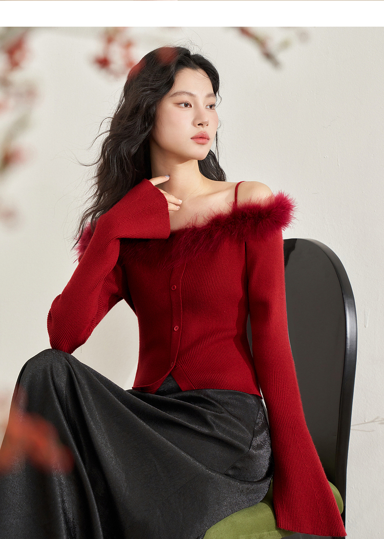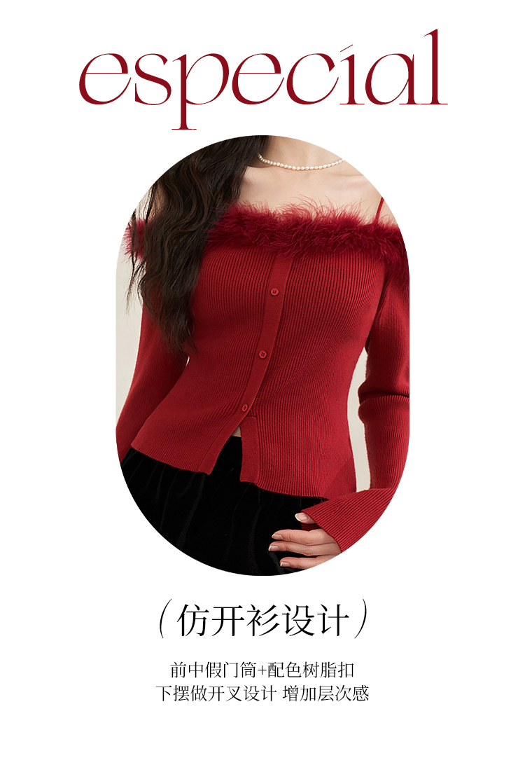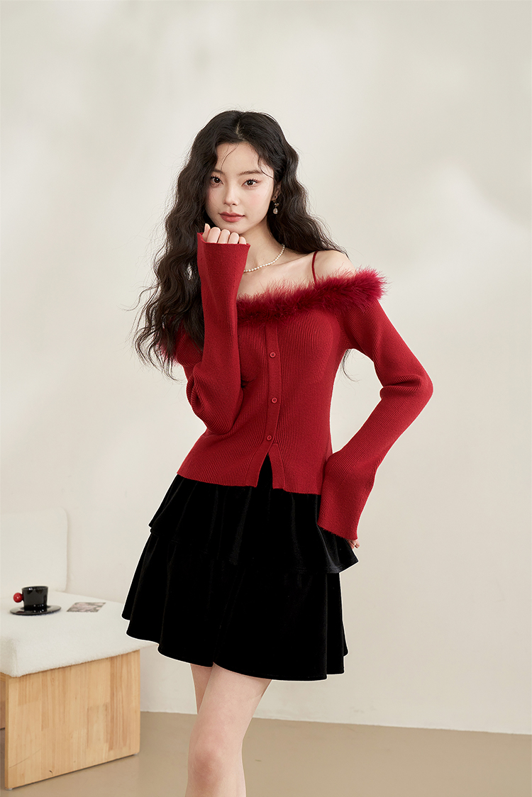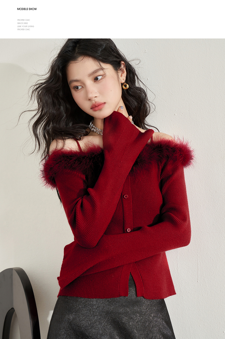西遇法式纯欲一字肩毛衣女新款毛茸茸短款针织上衣10240043