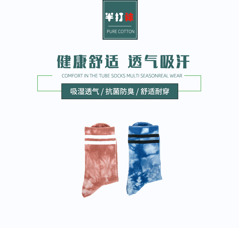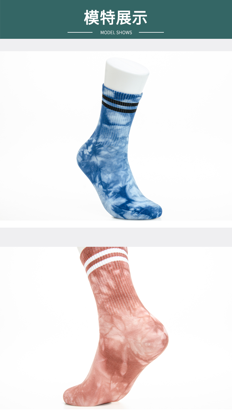 【2双装】扎染袜子男女潮ins纯棉嘻哈滑板篮球运动毛巾底长筒袜保暖袜【6双6折 2221205】
